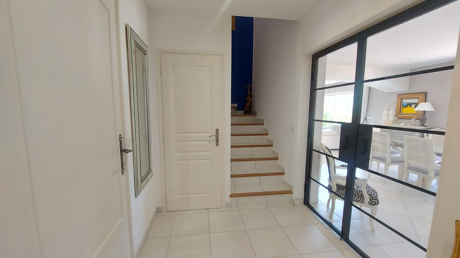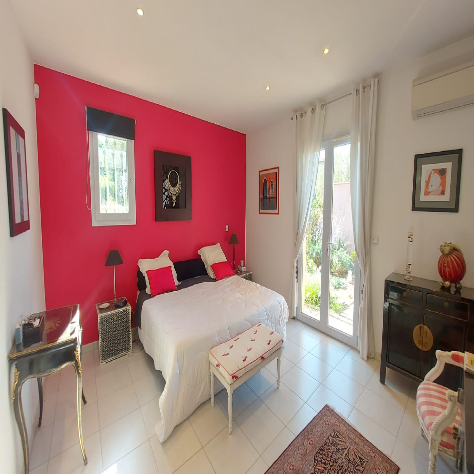 Construite en 2010 aux normes antisismiques, cette élégante demeure se compose en rez de chaussée d'une entrée avec dressing, wc et rangement ; une verrière permet l'accès à un magnifique double séjour/salon puis sa cuisine indépendante parfaitement équipée et aménagée qui se prolonge sur une arrière puis sur son double garage carrelé de 40 m2. Le rez-de-chaussée propose également une superbe suite parentale de 50 m2 avec salle d'eau , dressing et wc. Toutes ces pièces s'ouvrent vers l'extérieur et bénéficient d'une luminosité exceptionnelle. A l'étage, vous trouverez 2 magnifiques chambres permettant de profiter d'une vue dégagée sur les roches rouges ainsi le rocher de Roquebrune. Vous disposerez également d'une salle d'eau, d'un dressing et d'un wc indépendant.
