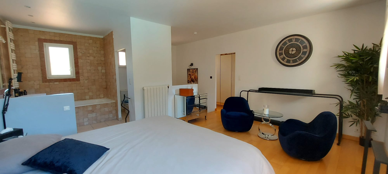 A l'étage, une belle suite parentale avec dressing, salle de bains et toilette.