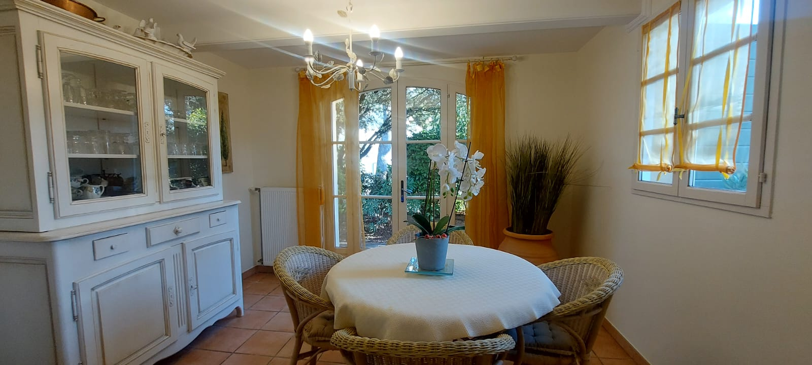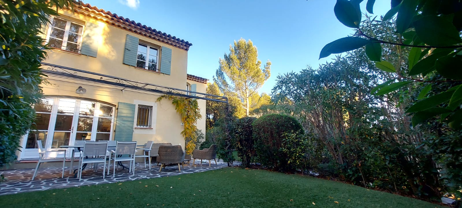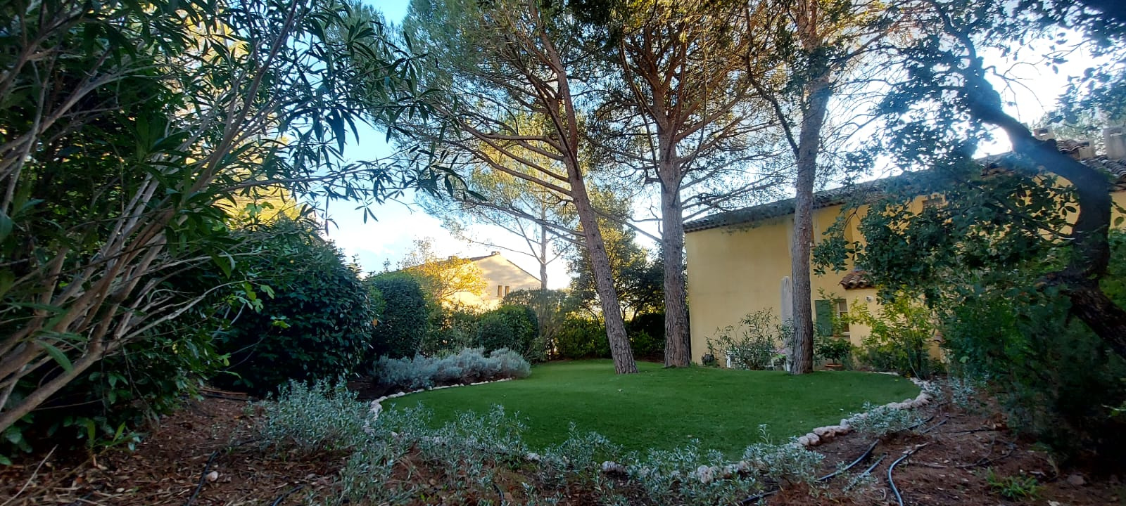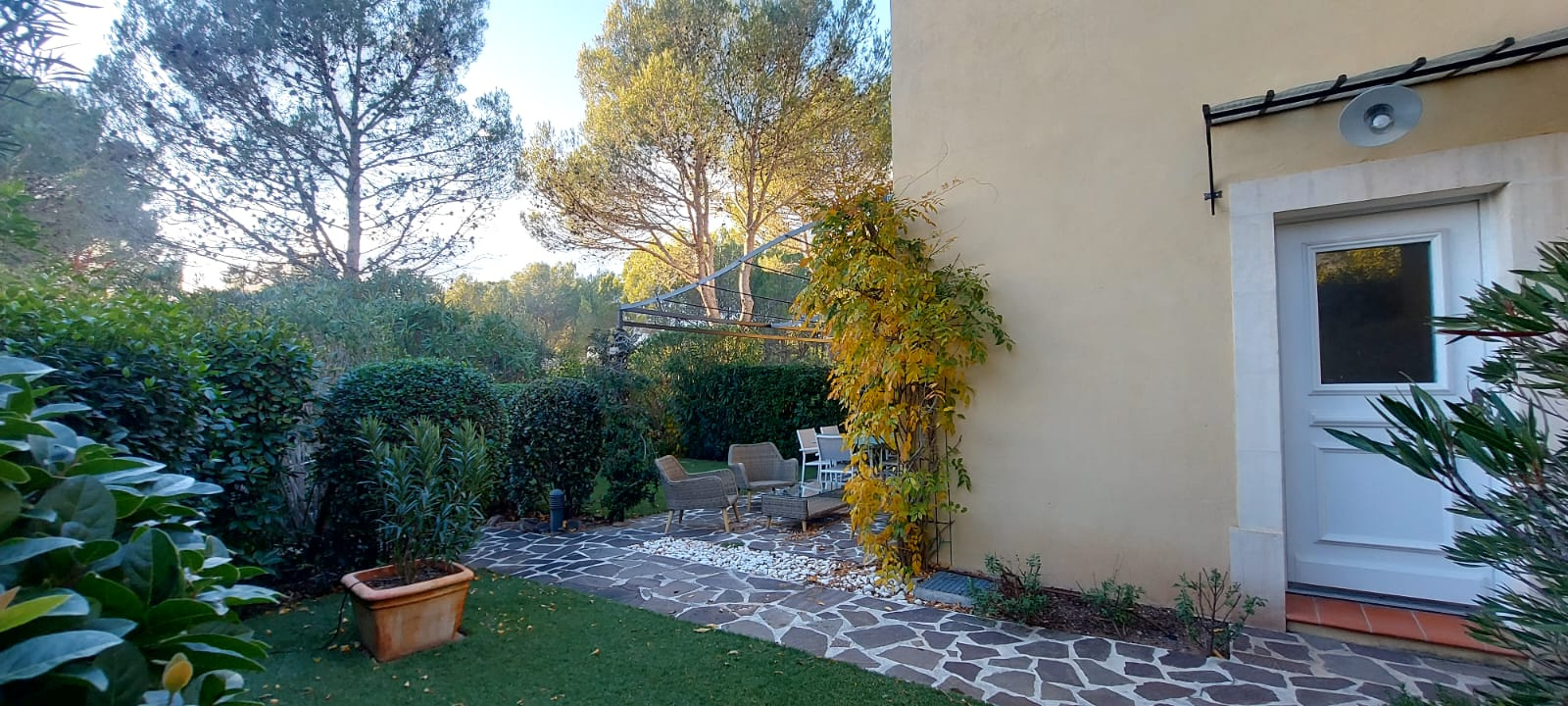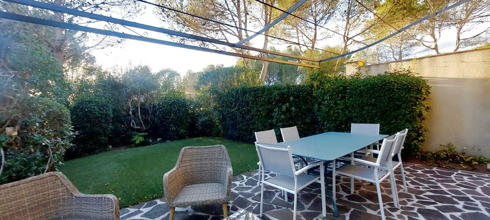 Extender immobilier vous présente cette jolie maison provençale, nichée en plein coeur des Golfs de Saint Endréol, d'une superficie de 121 m2 composée de 3 chambres avec un garage 20,20 M² et jardin 594 m². Elle se distingue au rez-de-chaussée par une Entrée, WC, cuisine, séjour avec cheminée, salle à manger 2 portes fenêtres donnant sur des terrasses, un grand cellier de 7 m². Au 1 étage: 3 belles chambres climatisées, 1 salle de bains et 1 salle d'eau + rangements La propriété est prete a vivre. Elle est parafite par son :Gazon synthétique, posé sur la totalité du jardin, un éclairage jardin marquise porte d'entrée / peinture RDC / changement chaudière / .. Statut juridique : Copropriété de 40 lots. Année de construction : 2003. Résidence sécurisée avec piscine. Les charges de copropriété sont environ 330 euros par mois (incl entretien de la piscine commune, des espaces verts, du jardin privé, éclairage des parties communes, entretien du portail d'accès, sécurité, etc.) Taxe foncières 1744 € . Pour toute demande de renseignement complémentaire, Merci de contacter Sandrine CESARINI au 06.20.94.83.10 ou sc@extenderimmobilier.fr