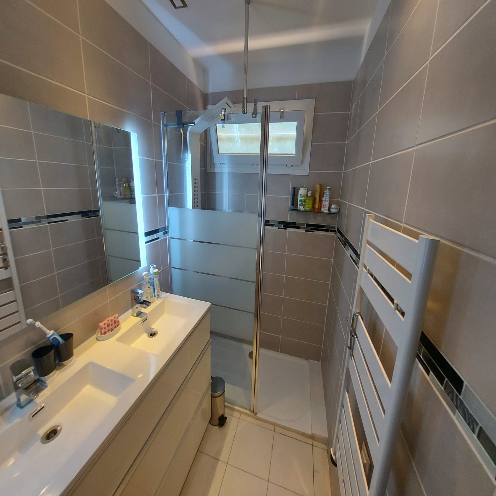 Cette villa individuelle rénovée avec goût est très bien agencée. La partie vie est composée d'un beau et lumineux séjour de 41m2 et d'une cuisine équipée Schmitt ouverte. La partie nuit est composée de trois chambres avec rangements, d'une sde avec double vasque et douche à l'italienne et d'un wc. Une autre chambre, ou studio de 16m2 avec vélux possédant son propre accès complète ce bien.