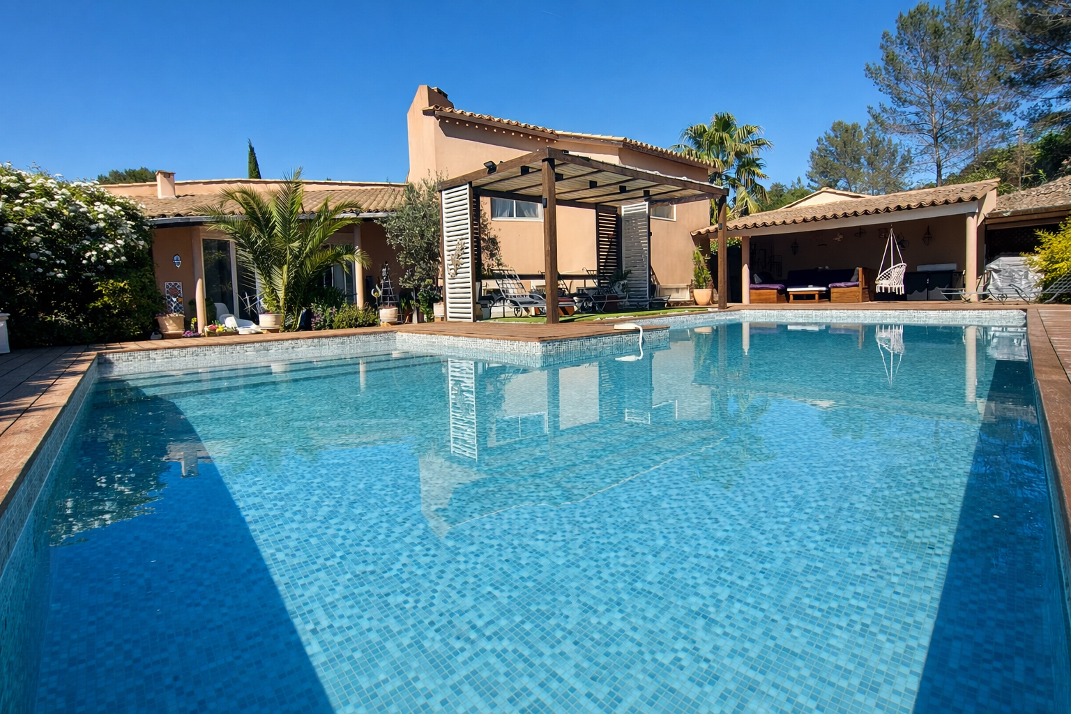 Les prestations sont de qualités, la demeure offre un chauffage et raffraichissement au sol par pompe à chaleur, climatisation , une cheminée, double vitrage, baie à galandage, volets électriques centralisées sur une partie du mas et volet persiennés dans l'esprit de la Provence. Concernant les espaces extérieurs une piscine avec rideau, s'intégre dans un magnifique environnement , un car port accueillant 3 véhicules et 2 garages dont un de 60 m2 seront séduire les amateurs de véhicules et d'espace de rangement. Une superbe veranda vous permet de profiter de la Vue sur le massif de Roquebrune ainsi que la plaine du Massif Des Maures. Aucun travaux n'est à prévoir.