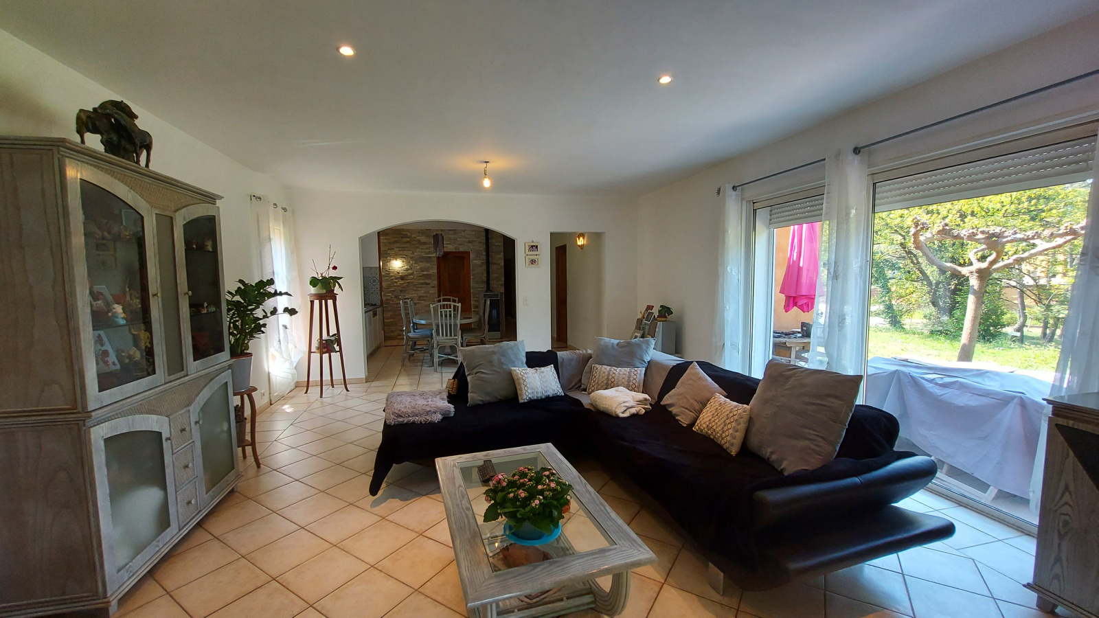 Villa de plain pied construite en 2005 composée d’une partie vie avec séjour, cuisine ouverte, cellier et d’une partie nuit avec 4 chambres, une sde, une sdb et deux wc.