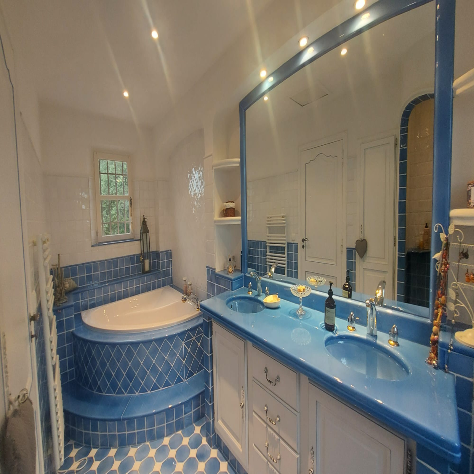 Ces quelques détails feront aussi la différence comme cette magnifique ferronnerie à l'intérieur comme à l'extérieur, ces belles portes intérieures en Châtaignier, ces volets électriques centralisés dans le séjour, son chauffage au sol, sa piscine avec son volet immergé, sa fosse septique neuve, l'arrosage automatique.... et surtout cette belle construction en triple génoise et double feuillet.