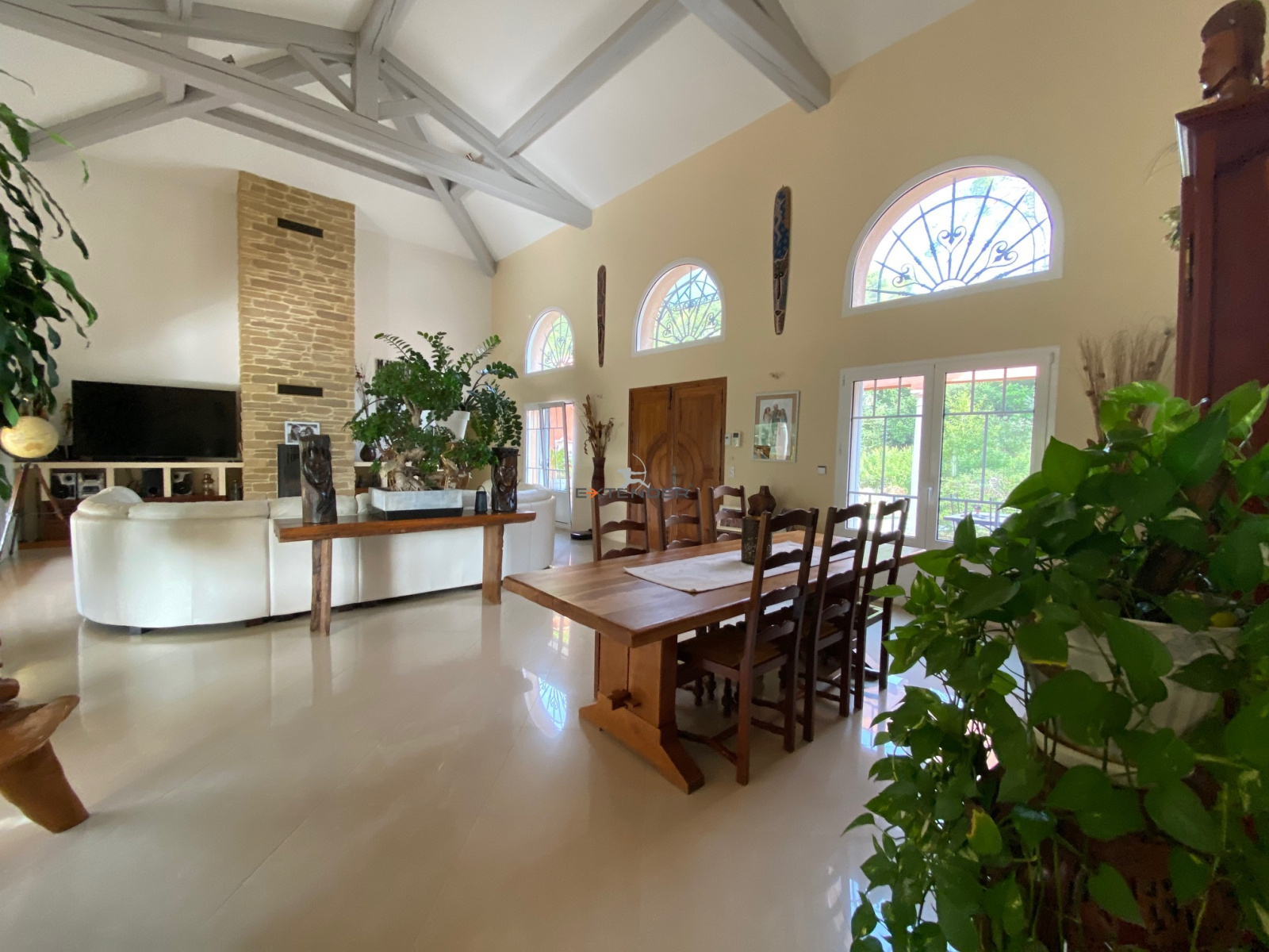 VENDU - Extender immobilier vous propose cette magnifique demeure de plain pied, nichée dans un écrin de verdure au calme et sans aucun vis-à-vis. Cette sublime villa néo-provençale de 250 m² habitables construite en 2007 est édifiée sur 6 500 m2 de terrain clôturé et arboré. Aménagée et décorée avec beaucoup de goût, elle se compose d’un grand séjour / salle-à-manger d’environ 80 m2, vous serez subjugués par sa hauteur de 6 mètres, avec cuisine séparée entièrement équipée, son arrière cuisine, toilettes invités, 3 chambres de maître dont 2 avec dressings, salle d’eau ou salle de bains et wc. Exposée plein sud, sa superbe terrasse à l’abri des regards vous invite à la détente , en vous offrant une fabuleuse perspective sur le parc arboré d’essences méditerranéennes ainsi que sa grande piscine cascade de forme libre. De plus, un Grand sous-sol de 250 m2 entièrement carrelé peut être exploité en salle de cinéma, salle de sport ou bien appartement. A l’arrière de la propriété, vous trouverez 2 boxes à chevaux dont une partie de terrain peut leur être dédié et également avec une aire de jeux pour les enfants. Très belles prestations, une propriété avec un potentiel incroyable. A proximité des commerces, écoles , 45 min de l’aéroport et 6 min du golf de Saint-Endréol. Contactez Sandrine CESARINI 06.20.94.83.10 ou sc@extenderimmobilier.fr