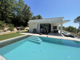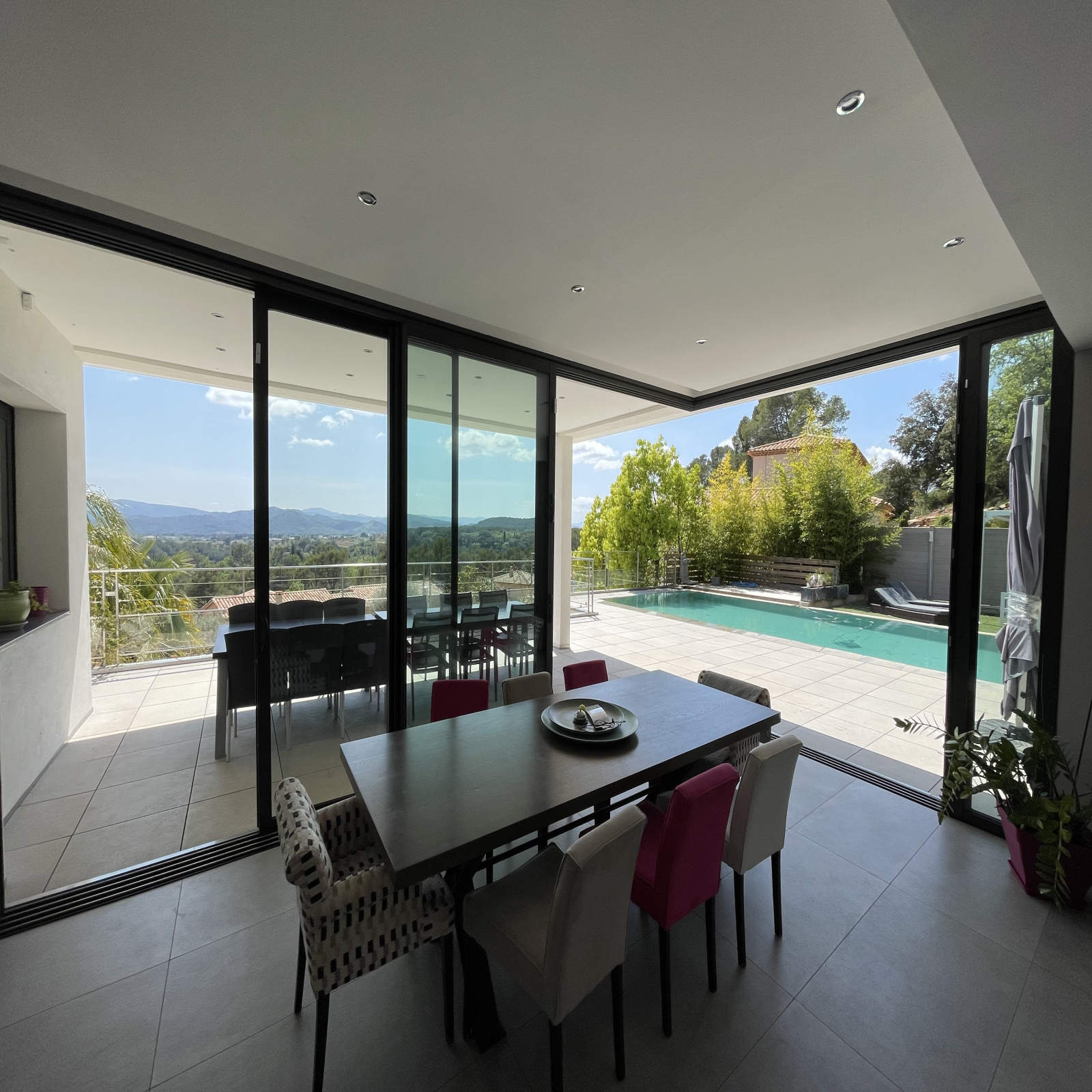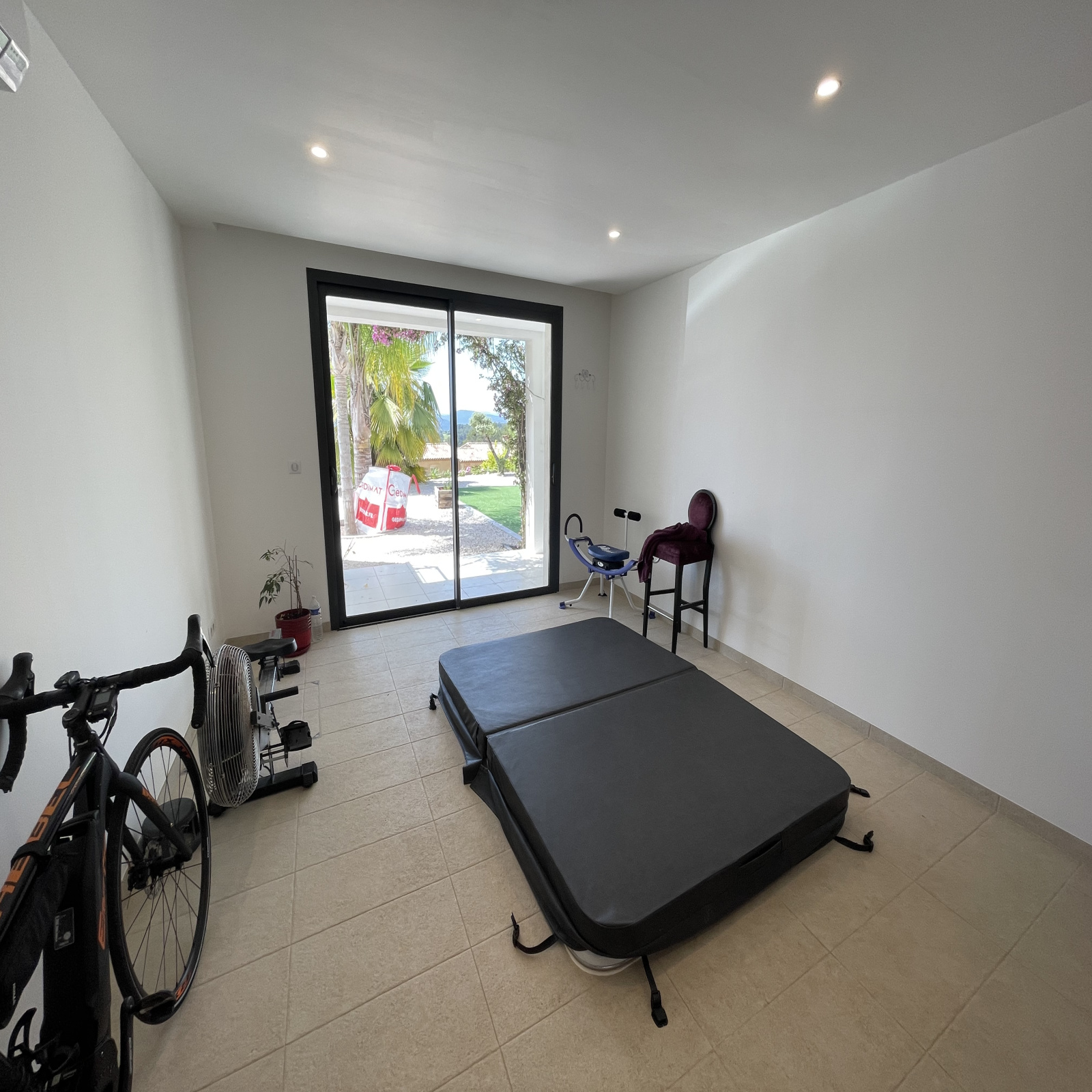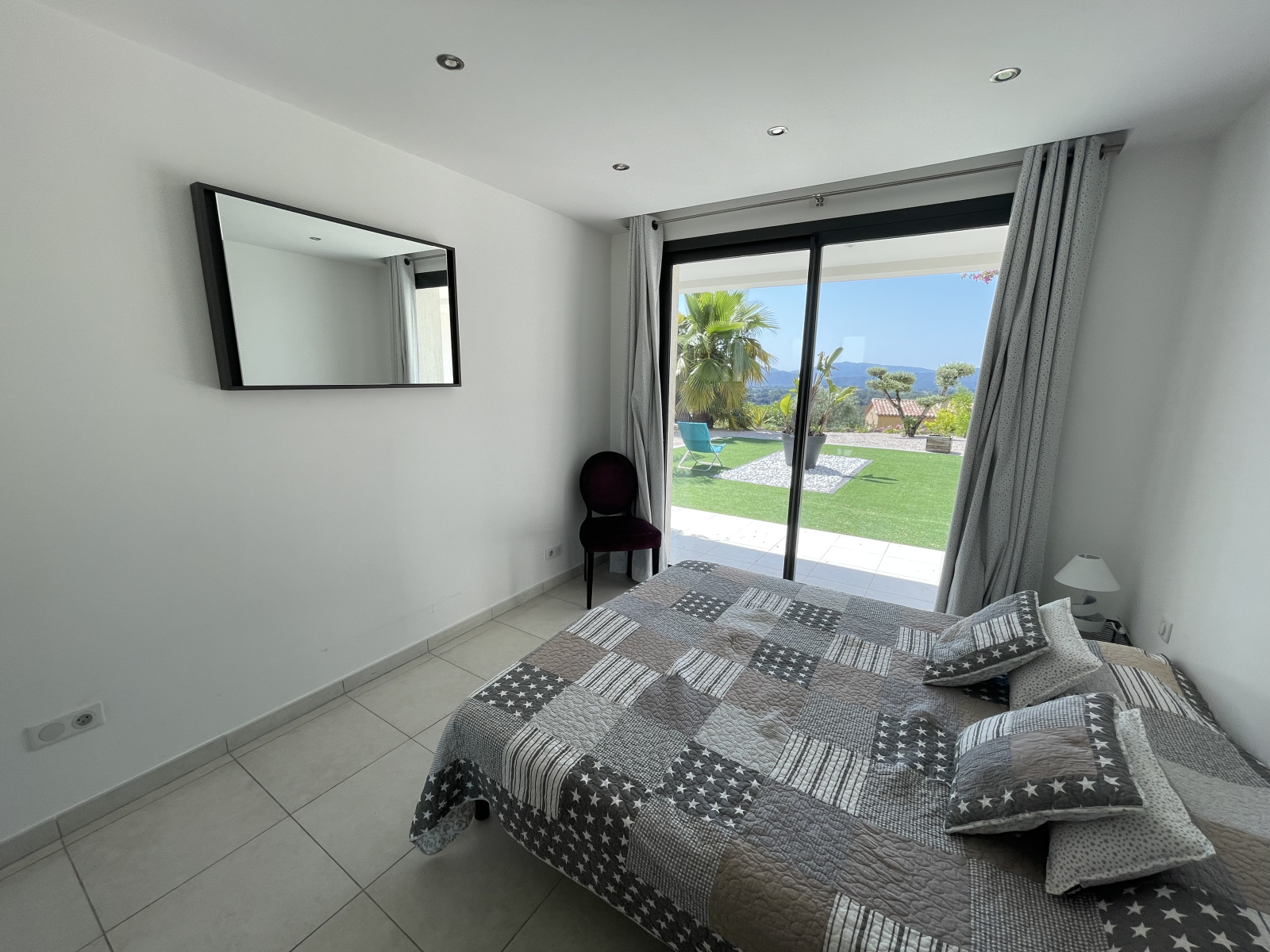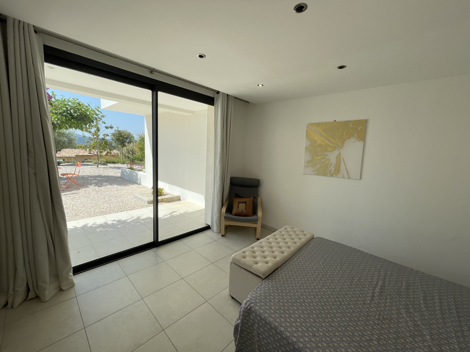 VENDU - Extender Immobilier vous présente cette somptueuse villa contemporaine récente. Édifiée sur un terrain clos de 1700 m², elle saura vous séduire par son exposition plein sud et sa vue époustouflante sur l'Estérel et le Massif des Maures. Dès son entrée, vous bénéficiez d'une magnifique pièce de vie baignée de lumière, donnant accès sur une terrasse de 200 m², laissant apparaître de magnifiques volumes décloisonés, sa cuisine entièrement aménagée et équipée, son cellier ainsi que sa suite parentale de 35 m² comprenant salle d'eau, wc et dressing. En rez-de-jardin, elle offre 3 suites parentales avec chacune un accès donnant sur un grand espace extérieur parfaitement paysagé, une salle de sport avec son jacuzzi, une buanderie, une cave et un garage d'environ 70 m². Une dimension très fonctionnelle et qualitative est ajoutée à cette propriété via des prestations modernes telles que, une somptueuse piscine à débordement chauffée, un toit-terrasse accessible pouvant être aménagé, un chauffage au sol par pompe à chaleur réversible ainsi qu'une climatisation, des baies à galandages. Elle s'inscrit dans un mode de vie unique, tout en étant proche des commerces, des écoles, ainsi que du golf de Saint Endréol.