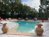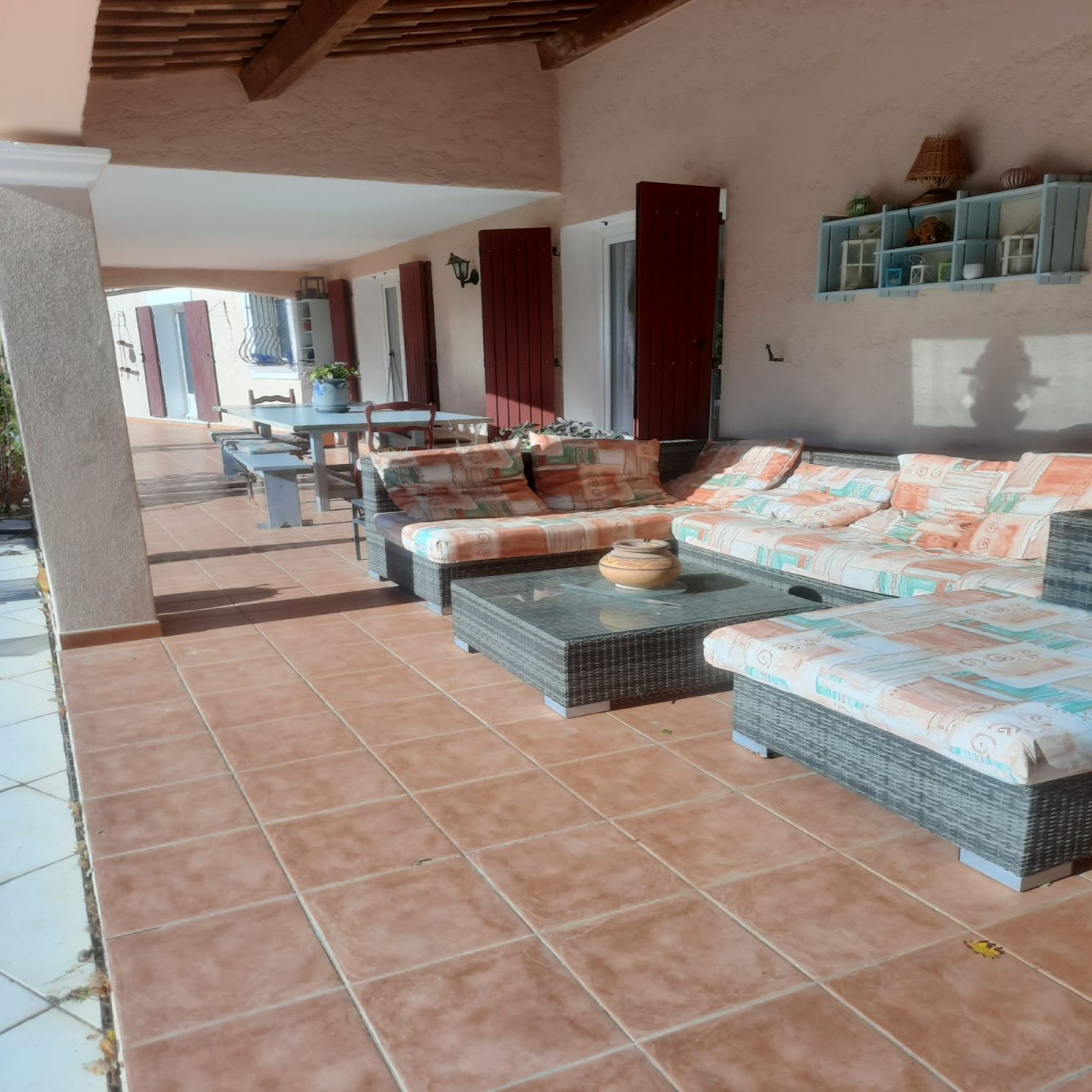 A l'exterieur un terrain complanté avec un beau jardin, une piscine de 9x4.5m au Chlore avec sa plage privative, un boulodrome, un garage, des abris voitures...
