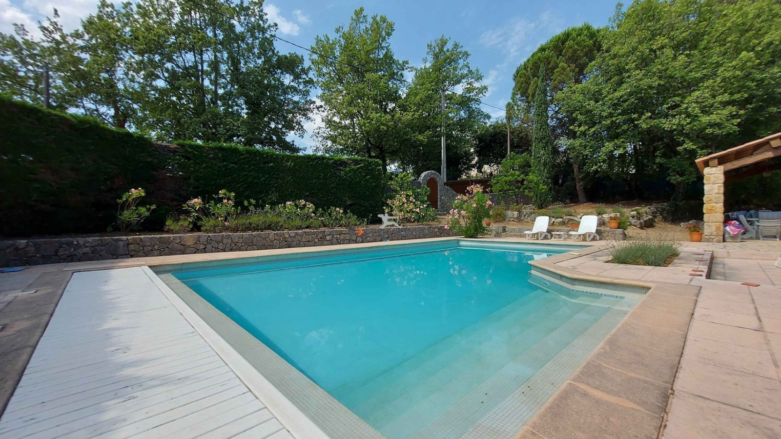 La villa est composée d’une entrée avec vestiaire, un séjour avec une cheminée et mur en pierre, une cuisine indépendante, un cellier, une suite parentale avec placards, sdb et Wc, puis une seconde partie nuit avec deux belles chambres et une sde. Un studio, une belle piscine, un pool-house, une terrasse couverte de 60m2, un abri voiture, et une cave viennent compléter l’offre.