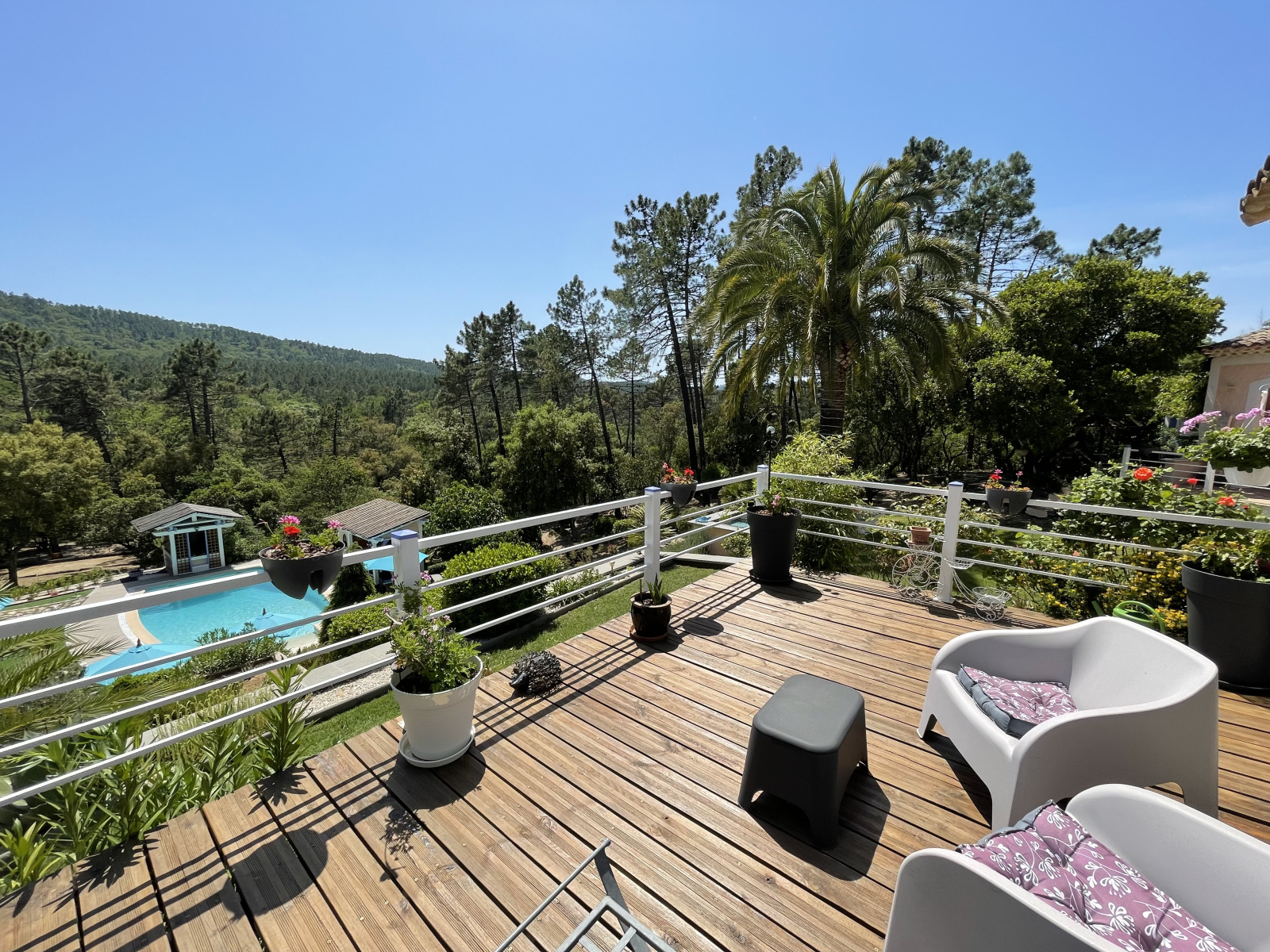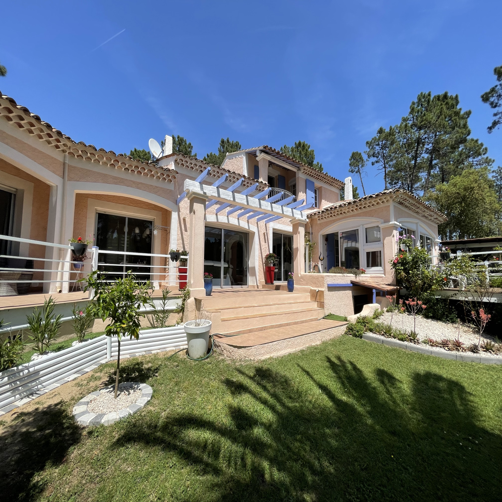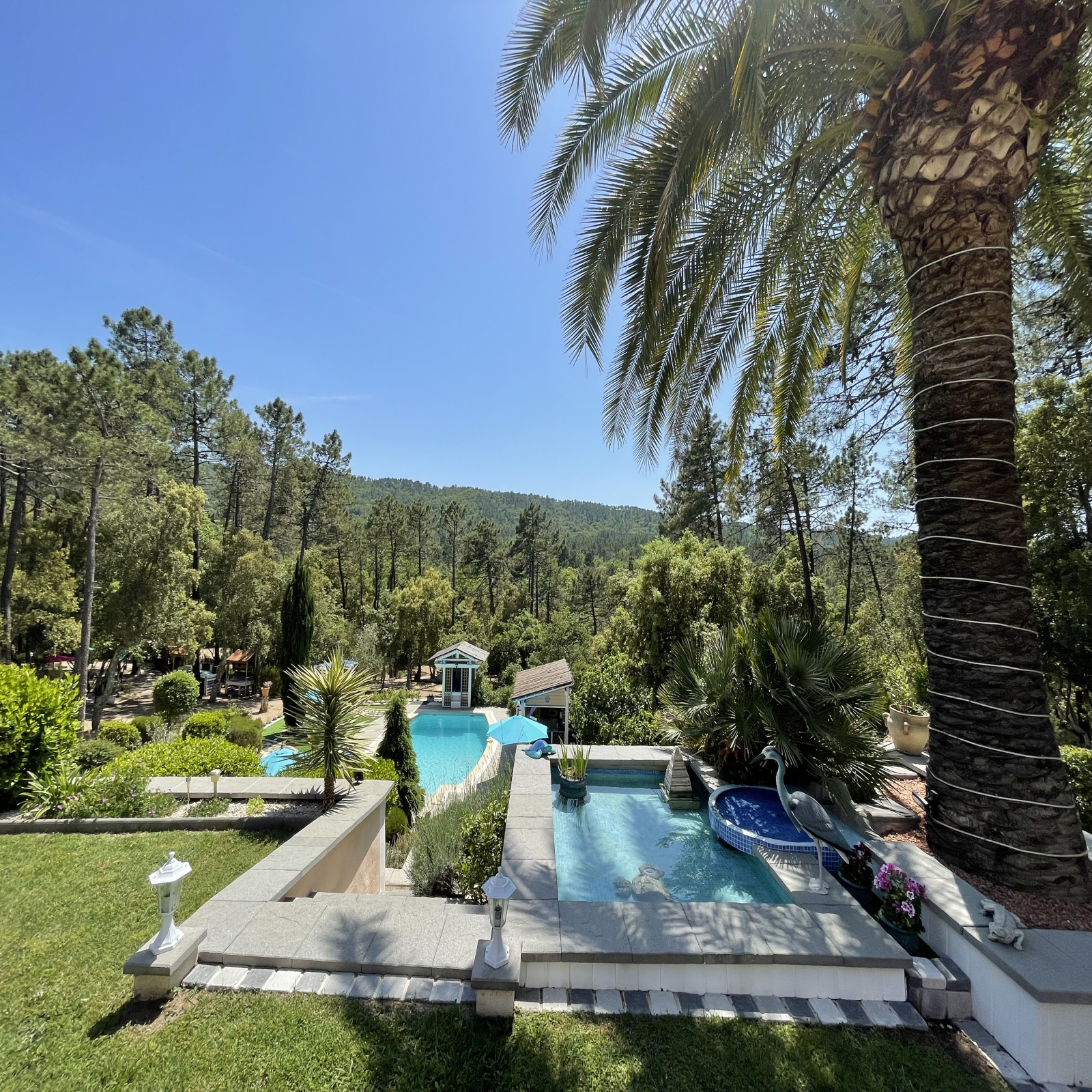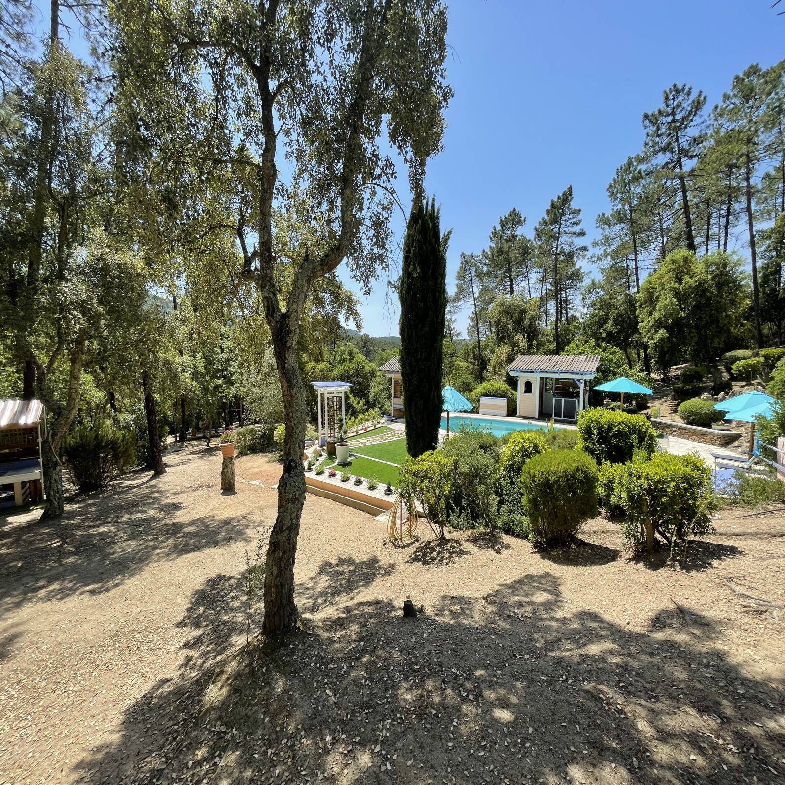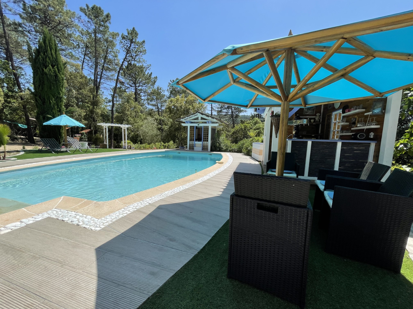 Extender Immobilier vous présente en exclusivité cette propriété de charme au calme absolu implantée à 5 minutes de l'entrée de l'autoroute et à 10 minutes des plages de Sainte-Maxime. C'est dans un domaine résidentiel et clos que cette propriété d'exception prend place. Fruit d'une exquise rénovation en 2019, cette bâtisse perçoit aujourd'hui 155 m² à la rénovation moderne. Ces 14 000 m² de jardin paysagé dévoilent de majestueux chênes, pins parasols ainsi qu'une piscine avec une vue contemplative sur les cimes des arbres centenaires. Une activité de chambre d'hôtes dans une dépendance est d'ores et déjà en place.