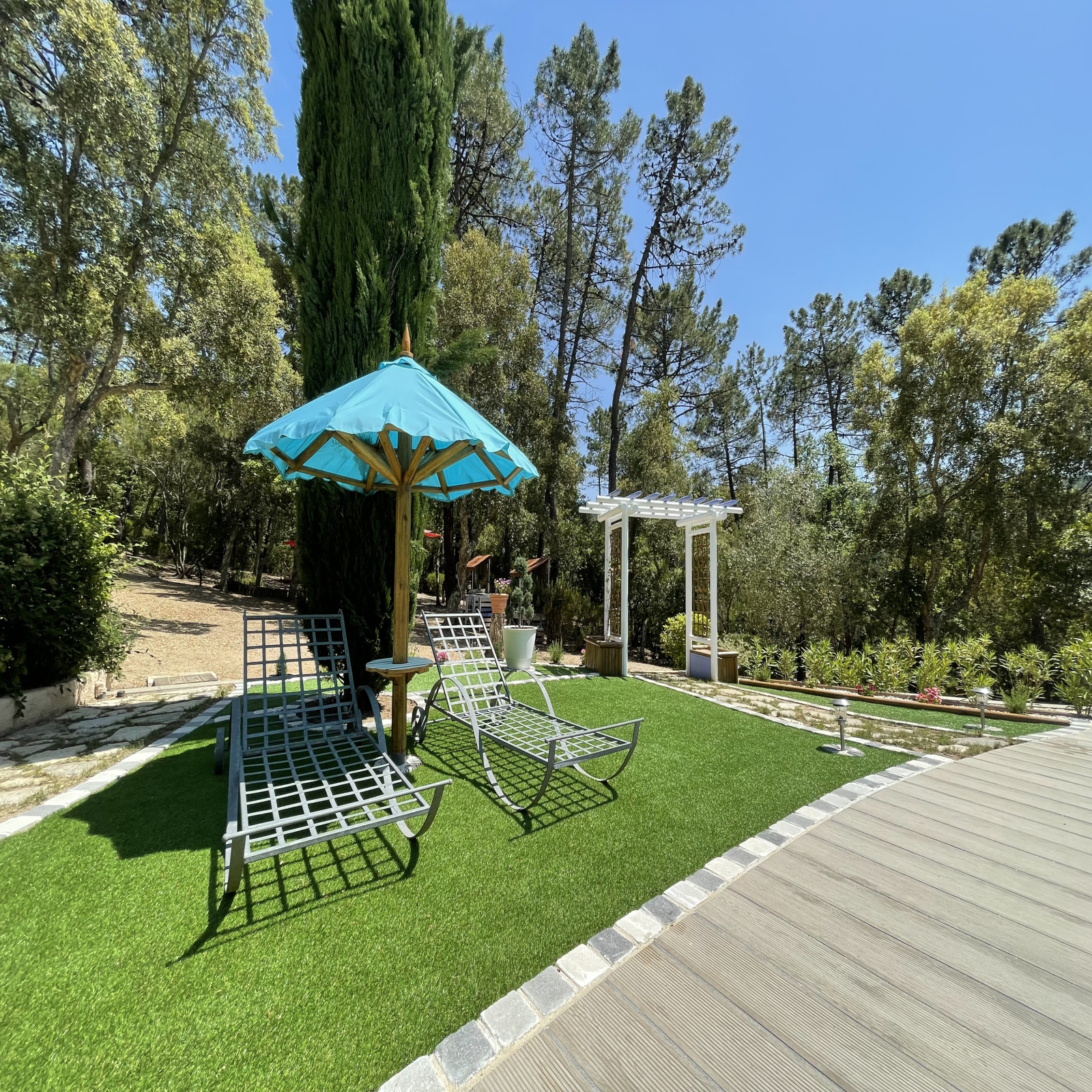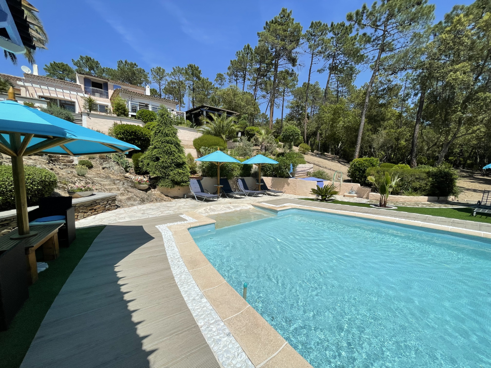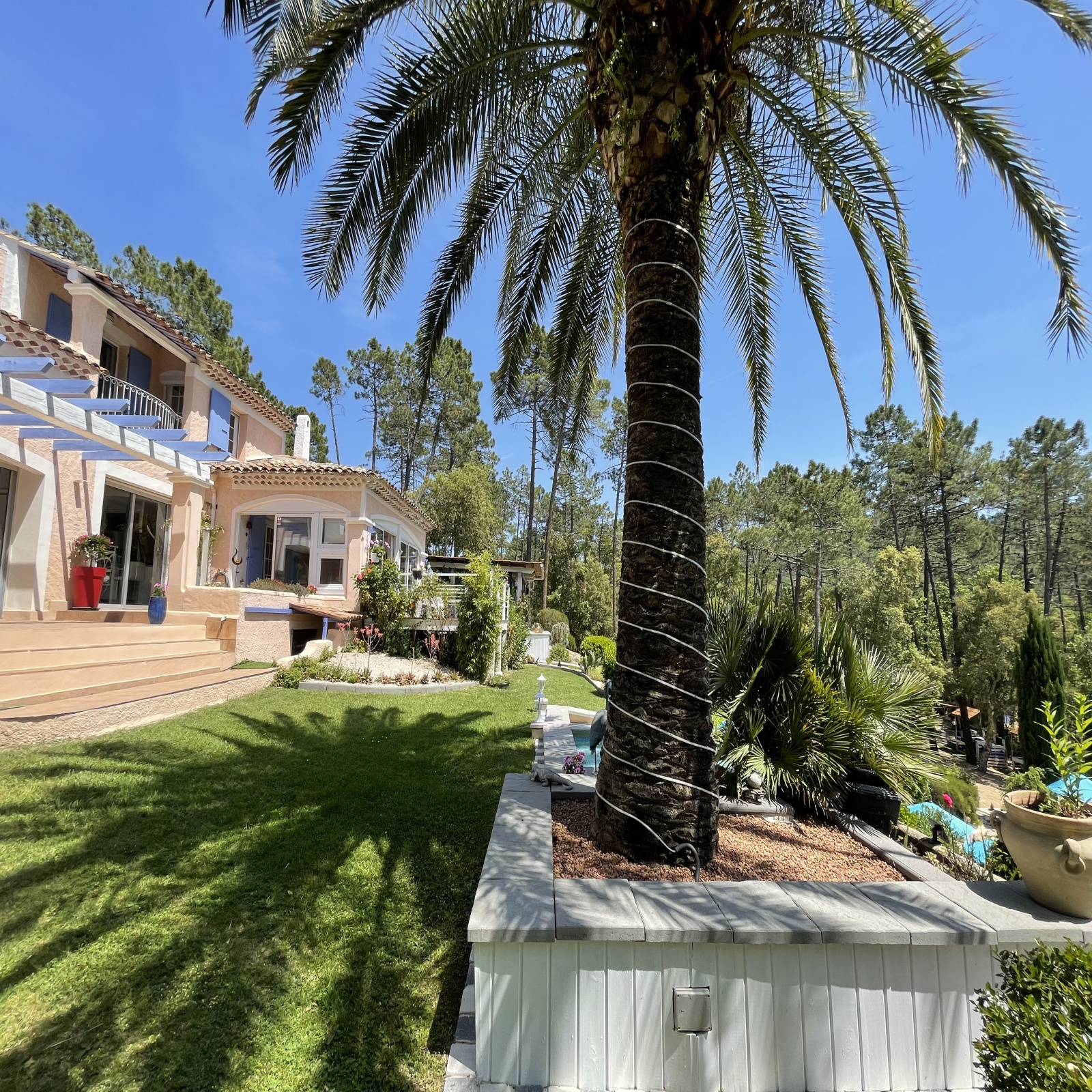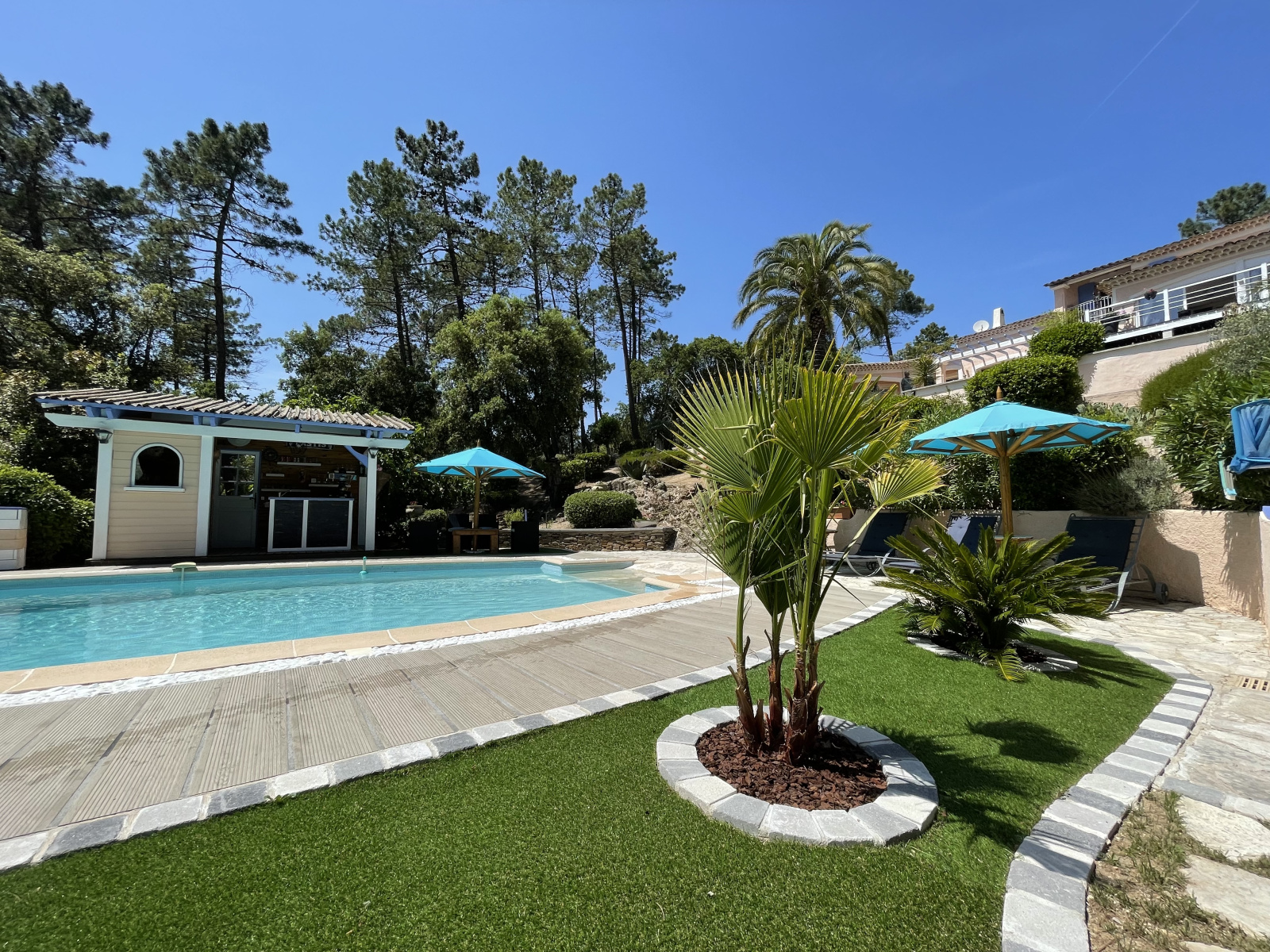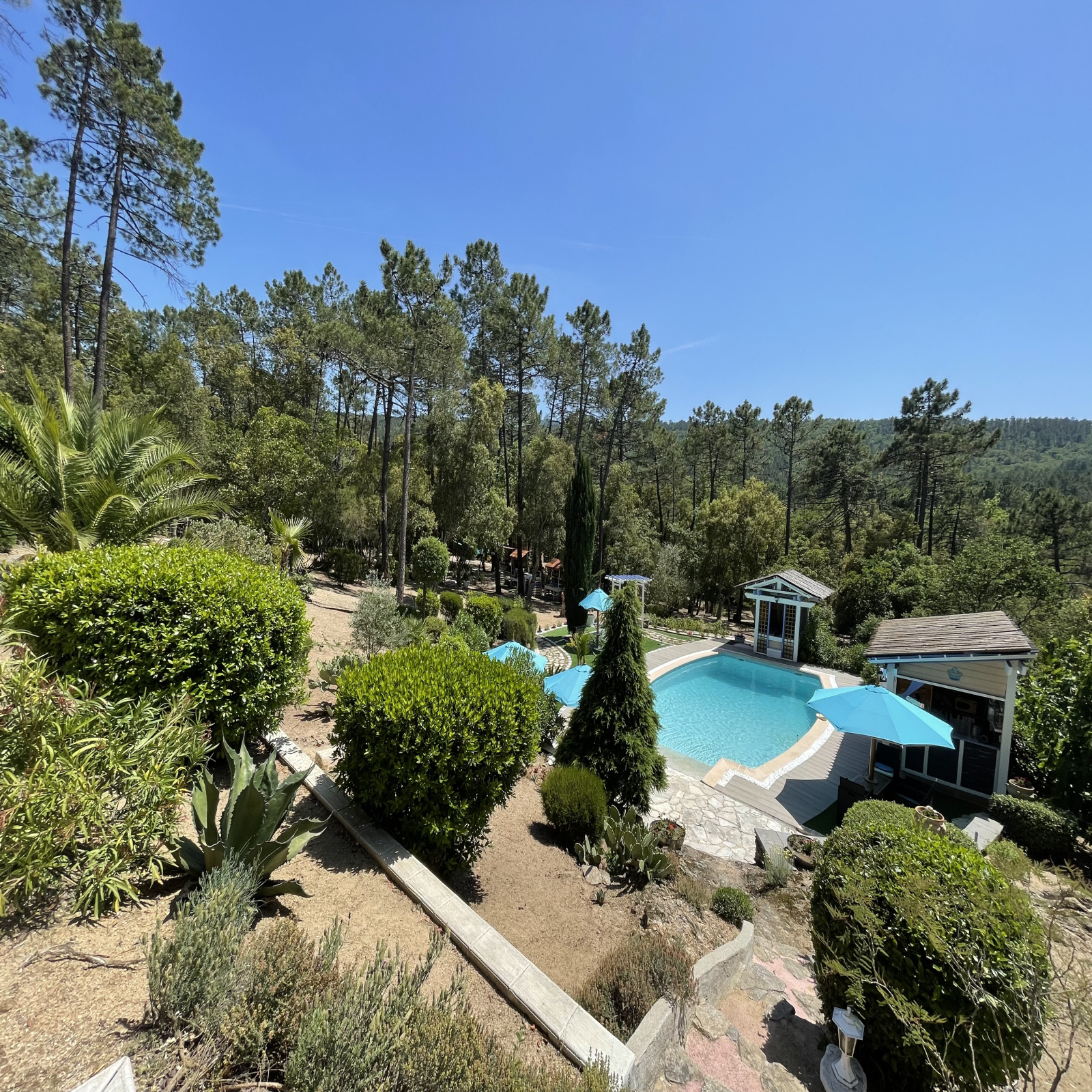 Extender Immobilier vous présente en exclusivité cette propriété de charme au calme absolu implantée à 5 minutes de l'entrée de l'autoroute et à 10 minutes des plages de Sainte-Maxime. C'est dans un domaine résidentiel et clos que cette propriété d'exception prend place. Fruit d'une exquise rénovation en 2019, cette bâtisse perçoit aujourd'hui 155 m² à la rénovation moderne. Ces 14 000 m² de jardin paysagé dévoilent de majestueux chênes, pins parasols ainsi qu'une piscine avec une vue contemplative sur les cimes des arbres centenaires. Une activité de chambre d'hôtes dans une dépendance est d'ores et déjà en place.