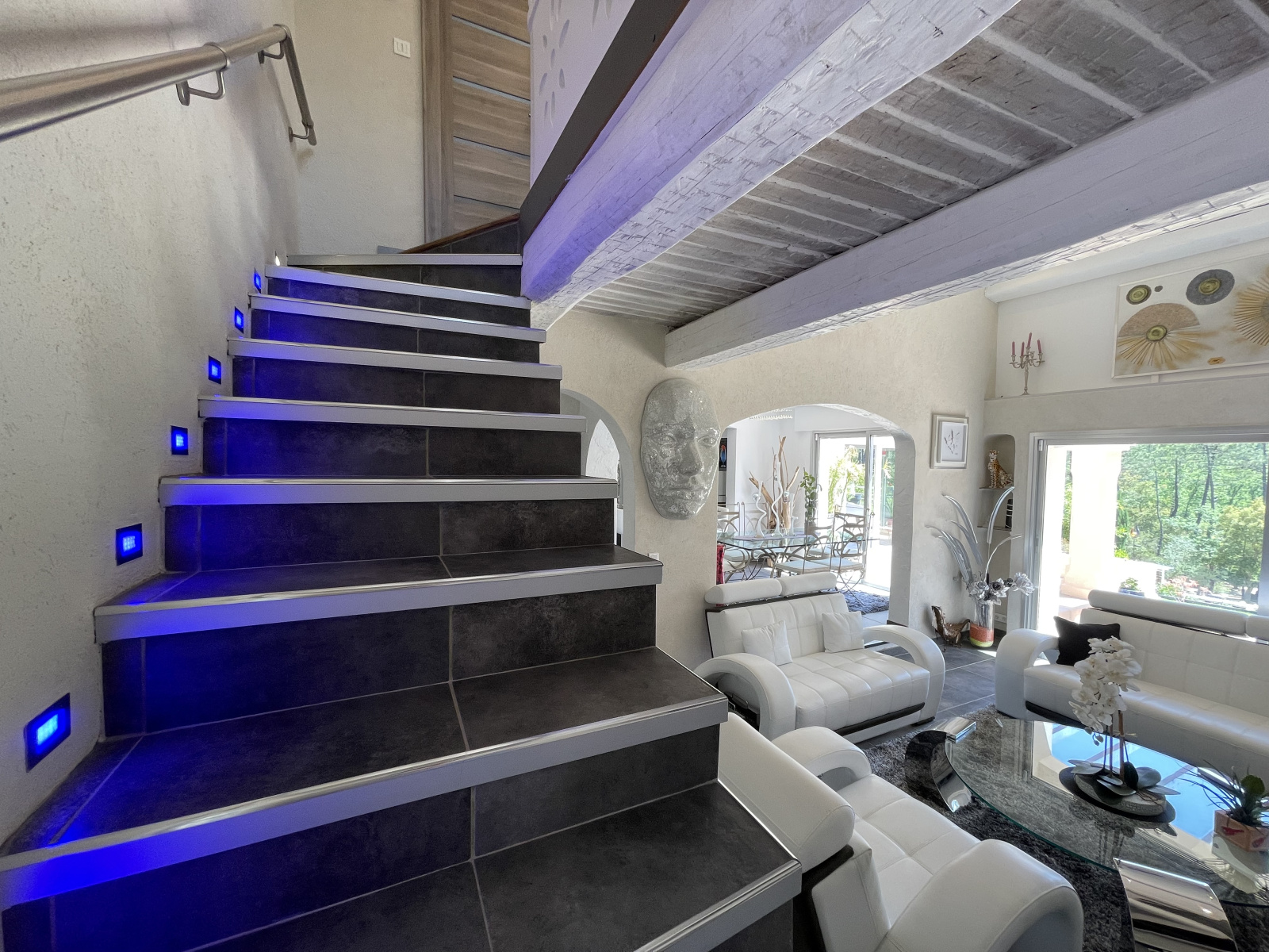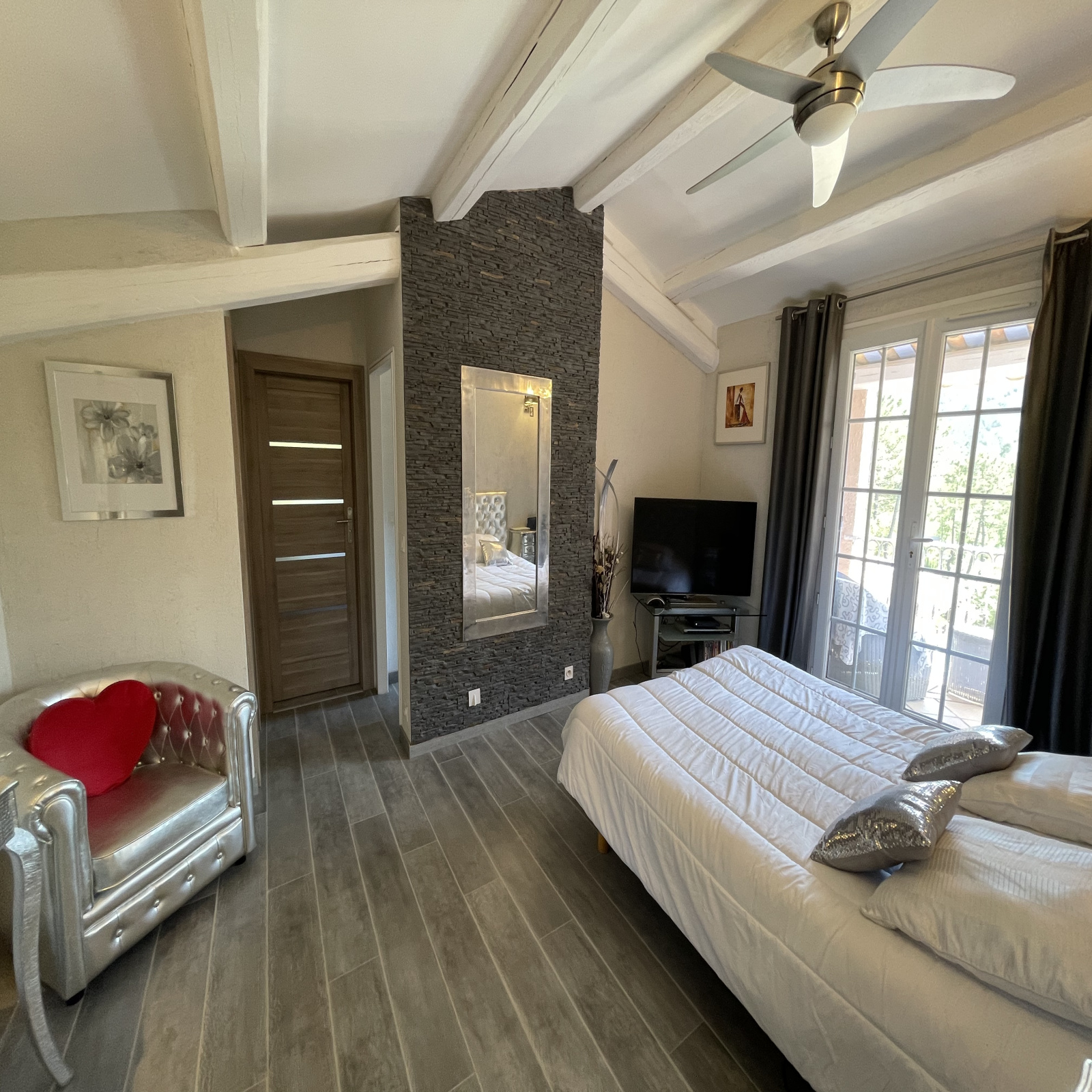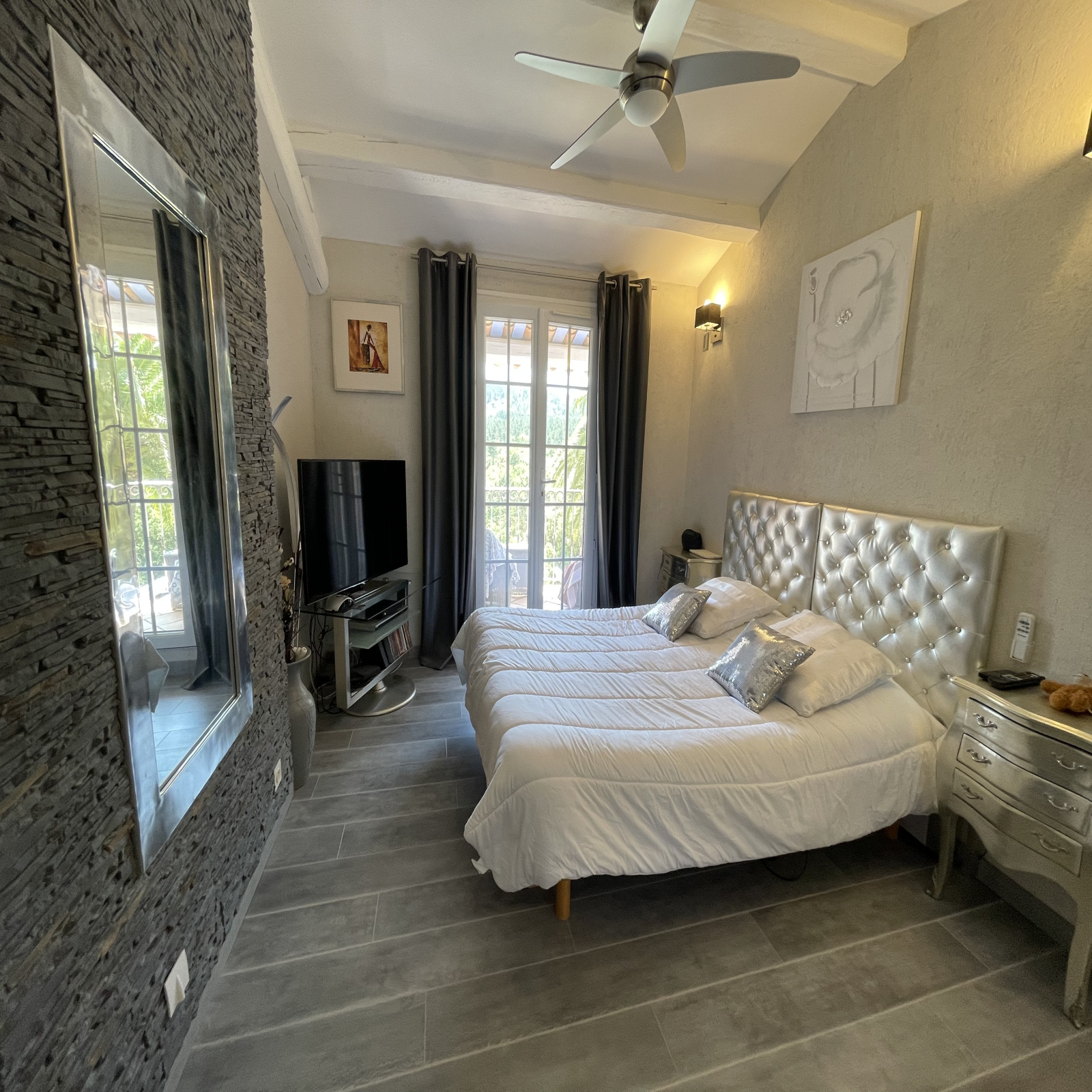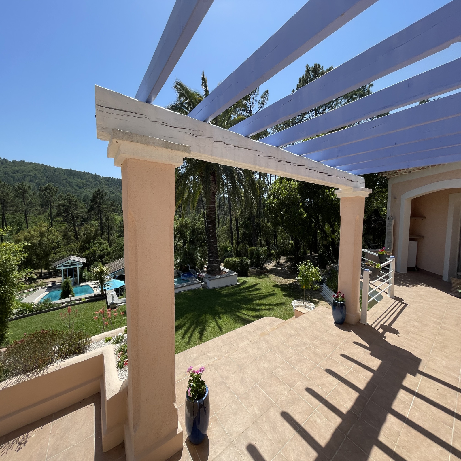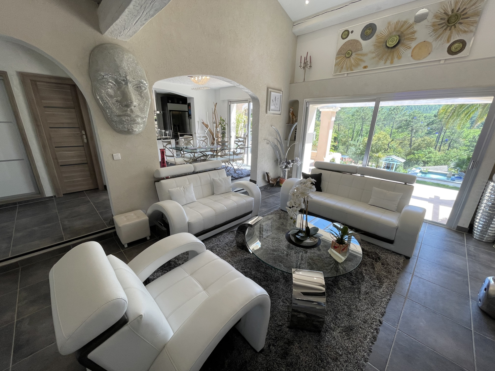 Extender Immobilier vous présente en exclusivité cette propriété de charme au calme absolu implantée à 5 minutes de l'entrée de l'autoroute et à 10 minutes des plages de Sainte-Maxime. C'est dans un domaine résidentiel et clos que cette propriété d'exception prend place. Fruit d'une exquise rénovation en 2019, cette bâtisse perçoit aujourd'hui 155 m² à la rénovation moderne. Ces 14 000 m² de jardin paysagé dévoilent de majestueux chênes, pins parasols ainsi qu'une piscine avec une vue contemplative sur les cimes des arbres centenaires. Une activité de chambre d'hôtes dans une dépendance est d'ores et déjà en place.
