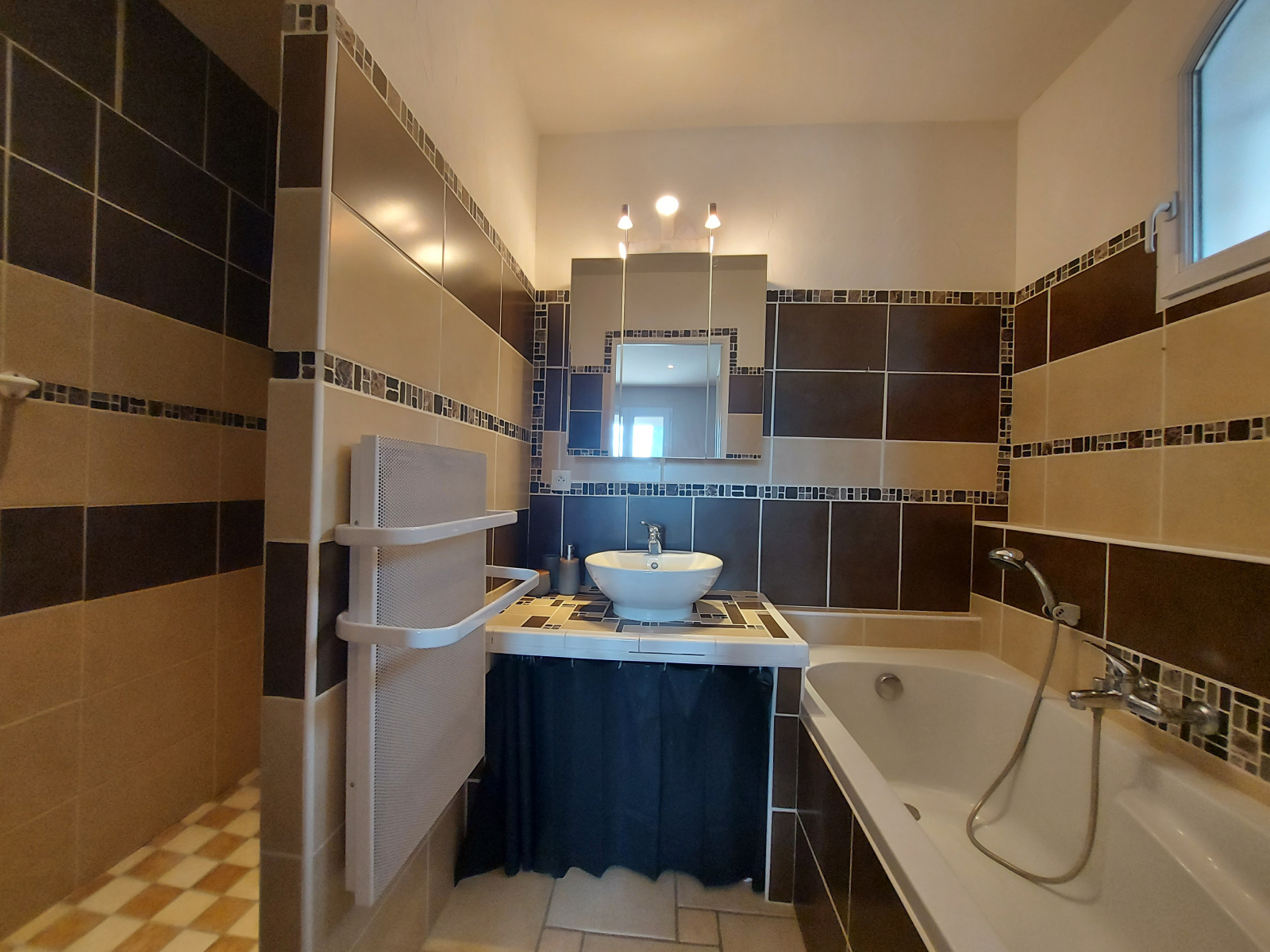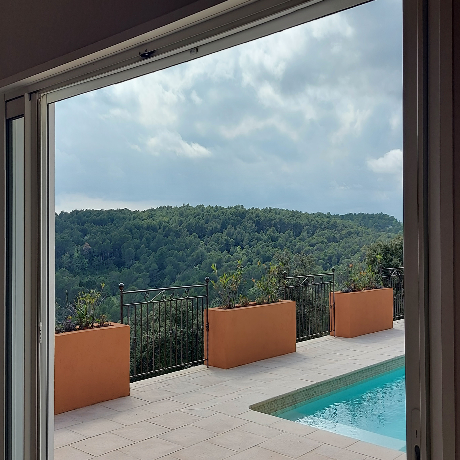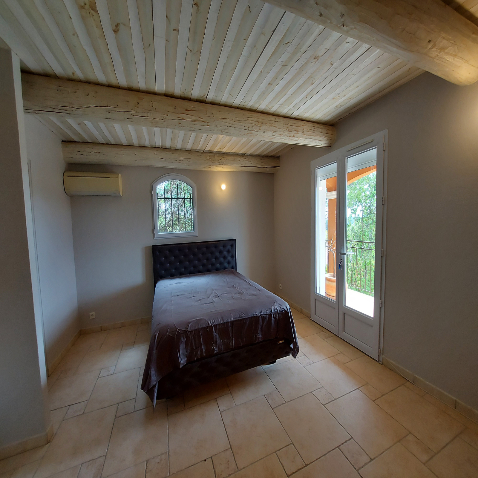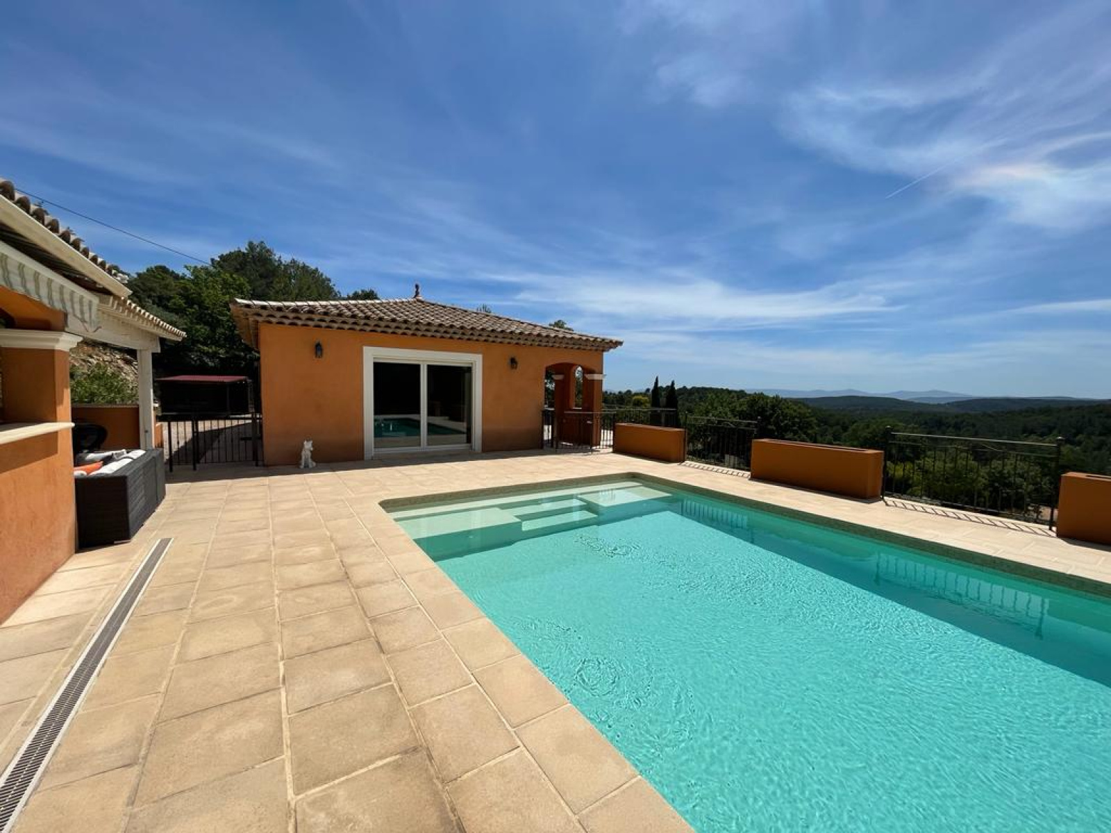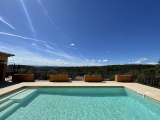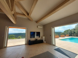 Cette villa récente de 200m2 environ, de construction tradtitionnelle au calme et sans aucun vis à vis possède une vue à couper le souffle sur le massif des Maures.