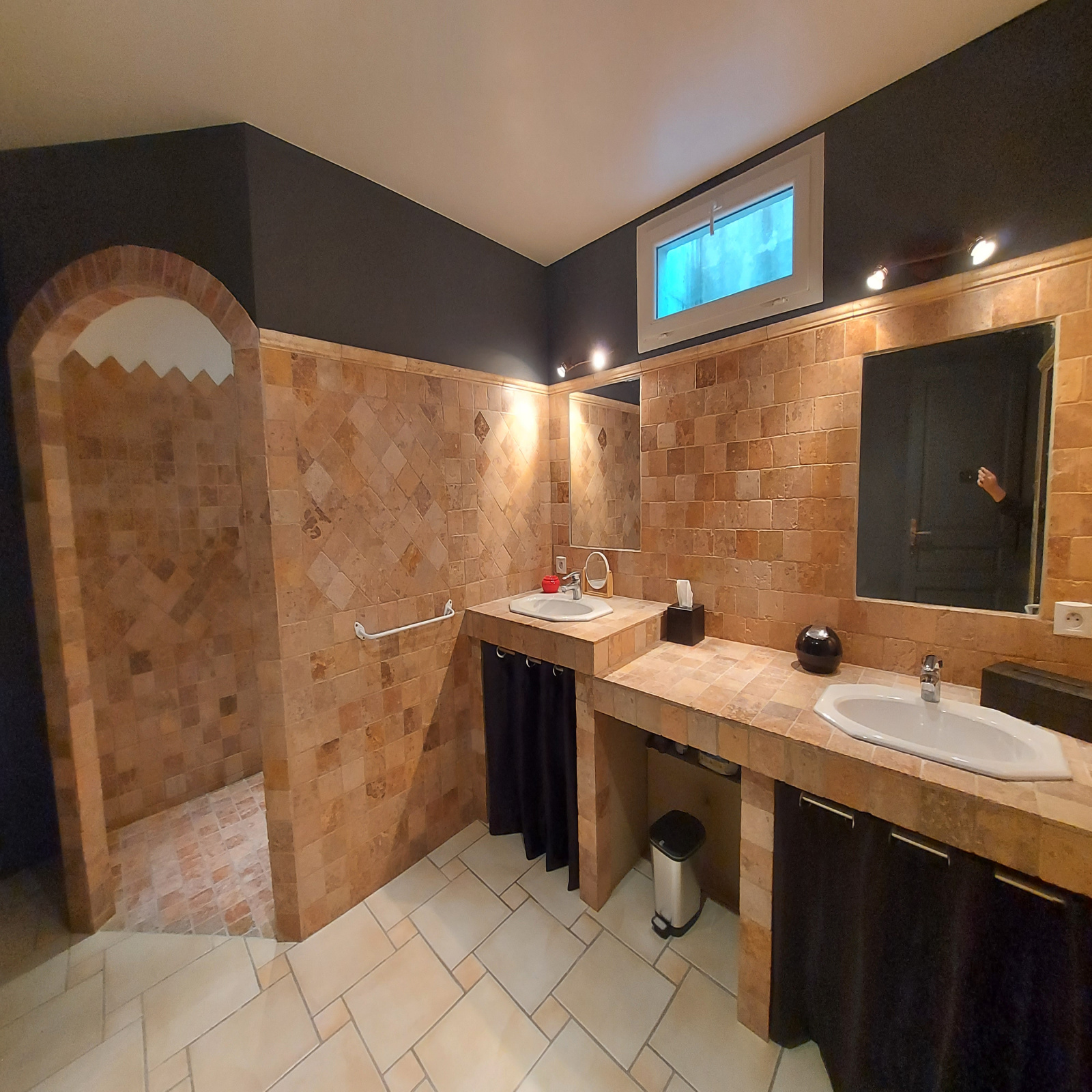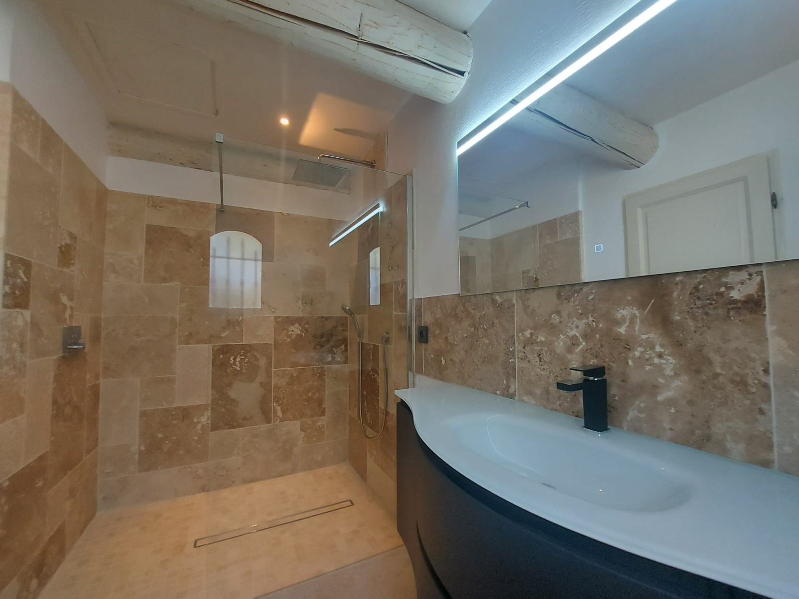 On appréciera le savant mélange du traditionnel et la modernité des prestations. La villa est équipée d'une climatisatioin Daikin dernière génération, de volets roulants électriques qui se contrôlent à distance. La cuisine de style provençale est équipée d'un piano de cuisson et d'électroménager haut de gamme. La qualité de la ferronnerie est à relever avec le portail, les gardes corps des escaliers... Tous les détails ont été pensés jusqu'aux interrupteurs design ainsi que la tablette qui gère la domotique de la villa.