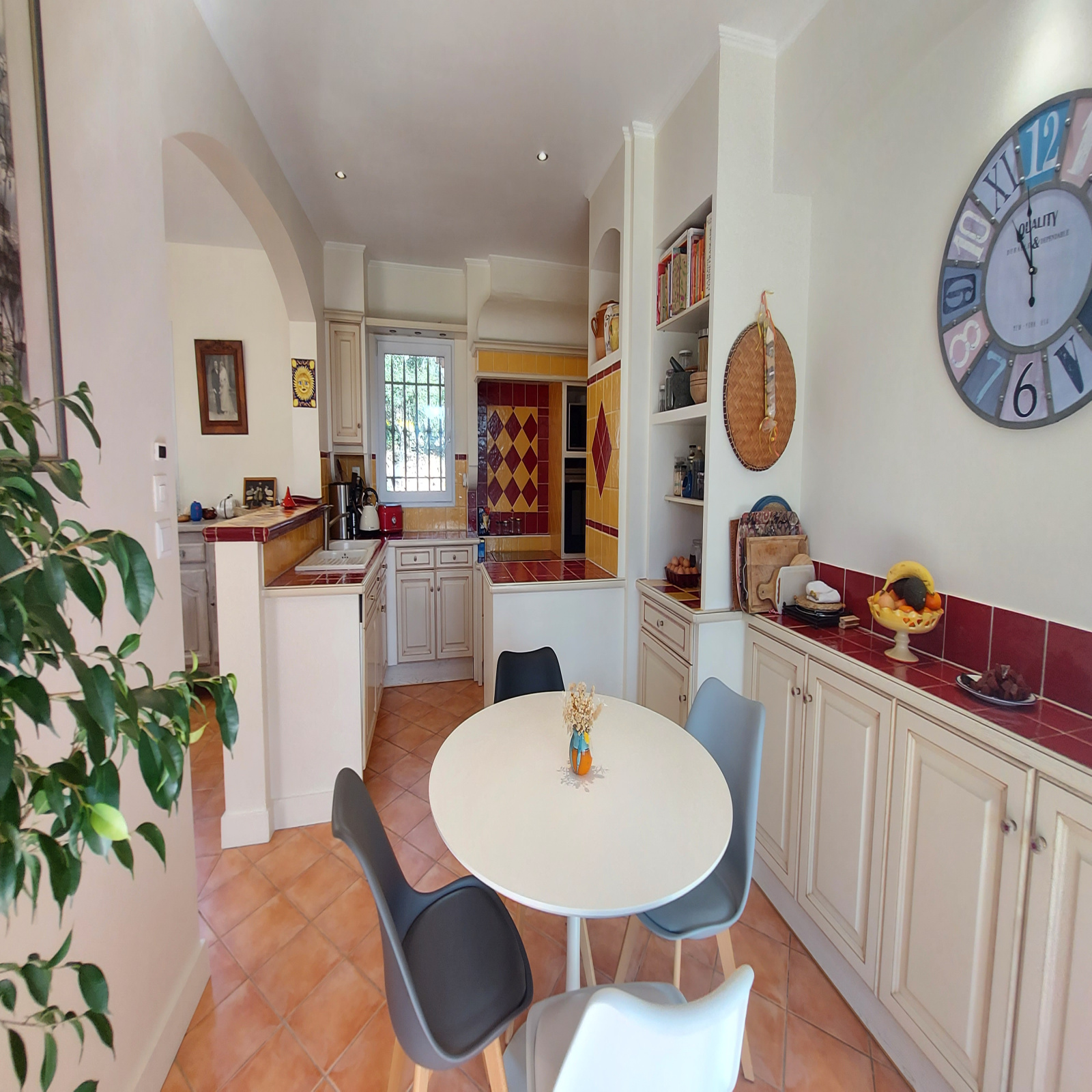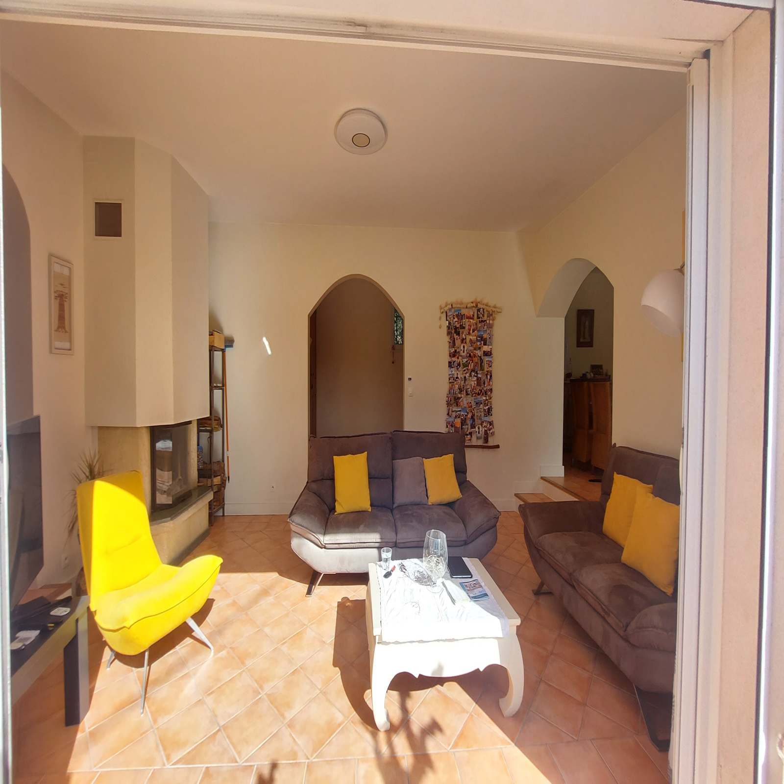 Cette lumineuse villa composée d'une vraie entrée avec vestiaire et rangements s'ouvre sur le salon baigné de lumière équipé d'une cheminée insert, une salle à manger qui se prolonge sur la cuisine ouverte équipée avec son espace repas puis un cellier. La partie nuit est composée d'un coin bureau, un wc, deux suites (chambre, rangements et salle d'eau) dont la suite principale. A l'étage deux autres chambres, une salle de bains avec douche et un wc.