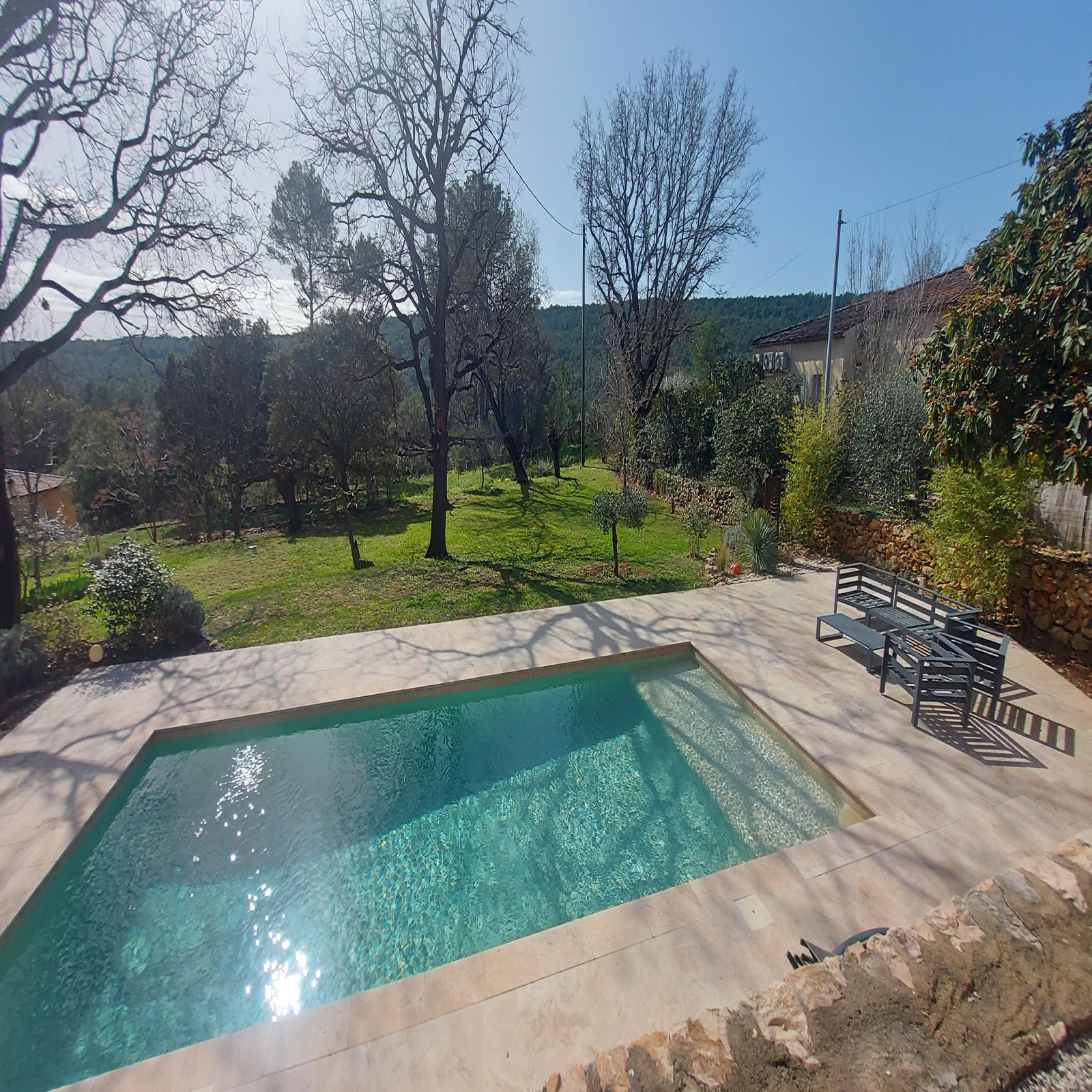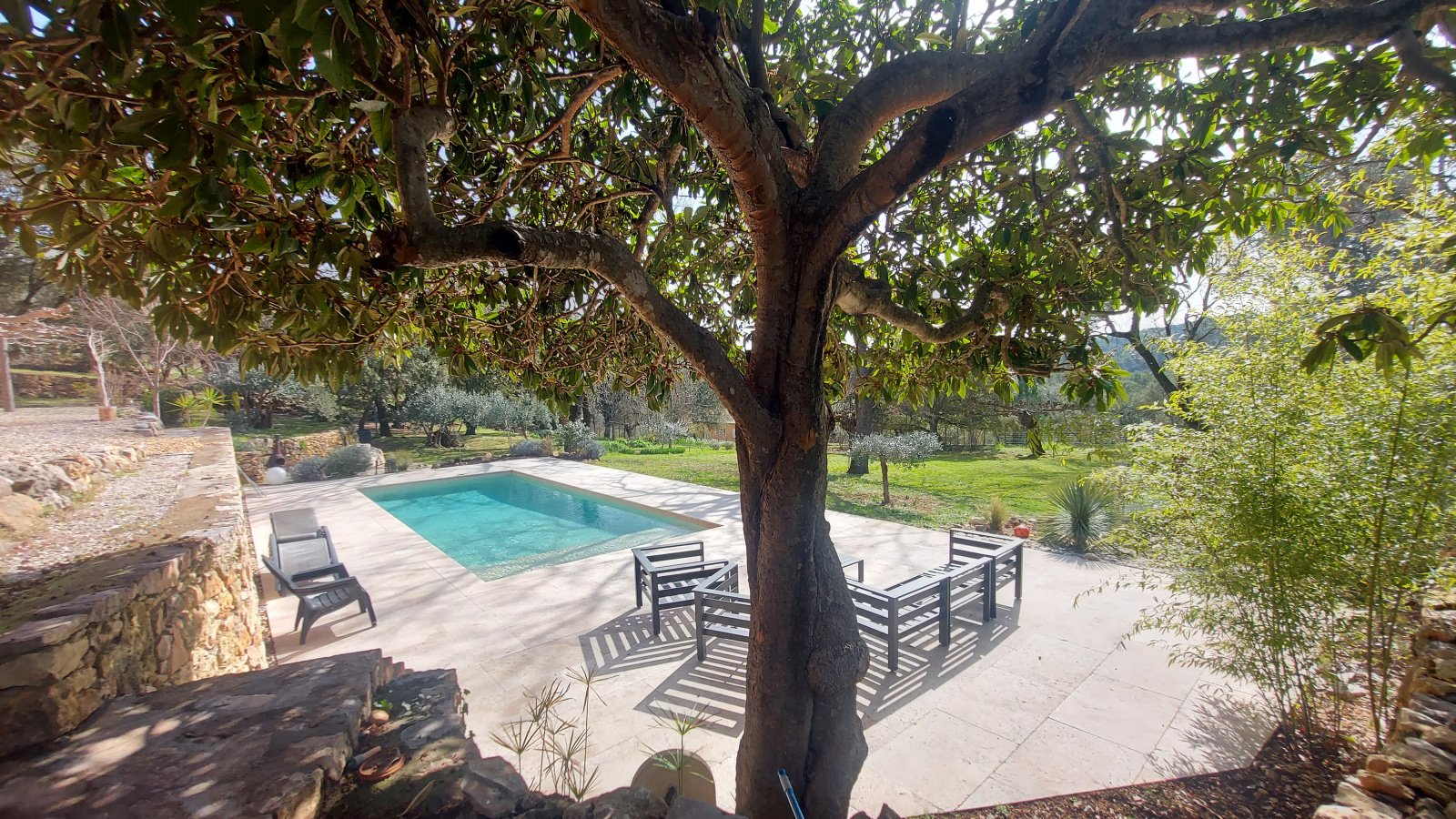 L'espace détente est sublimé par une belle piscine chauffée Diffazur au sel 10x5 sa plage immergée, ses terrasses, son salon d'été protégé par un mur de pierres sèches offrant en toute intimité une belle vue sur la nature.