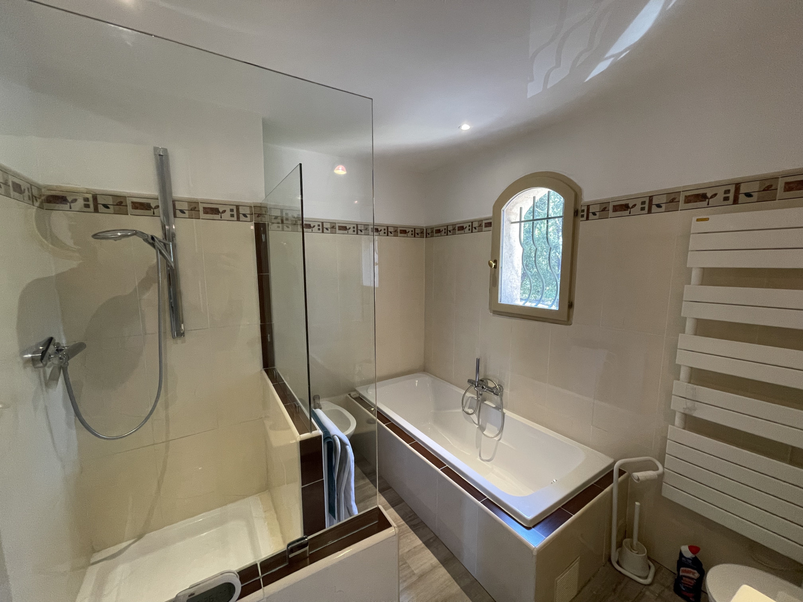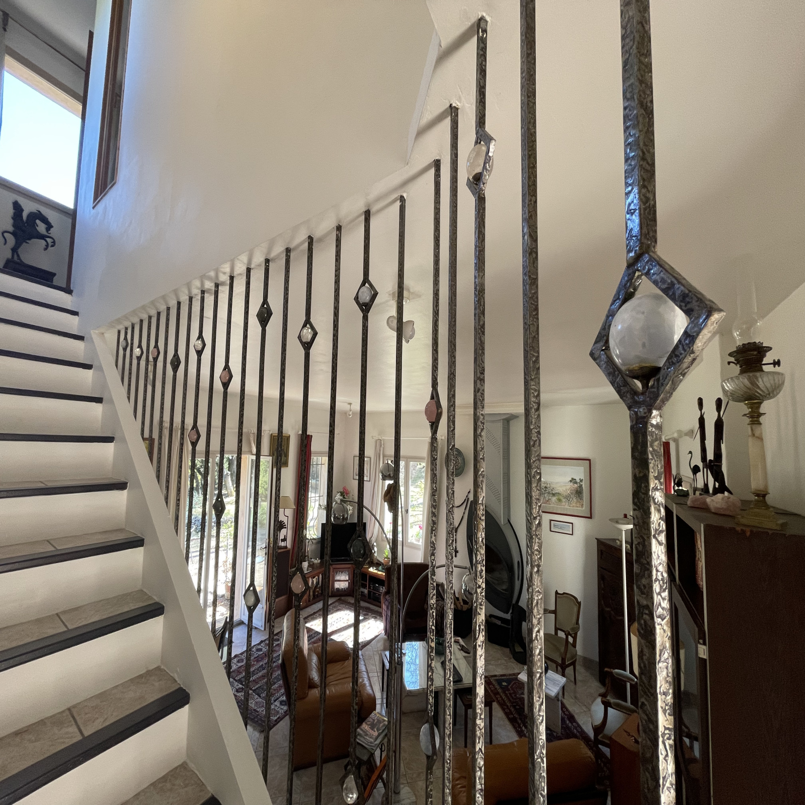 On appréciera le superbe terrain arboré et intimiste, l'esthétique et la perspective de la piscine, le cabanon en pierre sèche. La disposition de la villa, la cheminée suspendue, le garde corps en fer forgé, la suite parentale à l'étage avec son parquet en palissandre du Madagascar.