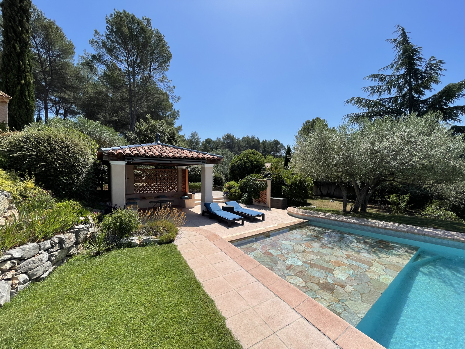 Le volet paysager est exceptionnel, un jardin complanté de chênes, d'oliviers, d'arbres fruitiers, de massifs méditérannéens feuris, de prairies parsemées de cyprès chandelles,... il est parfaitement entretenu. On pourra profiter de différents espaces de détente, une somptueuse piscine de 11mx5m en forme libre avec sa belle plage, un salon d'été protégé du soleil, un pool house, une terrasse dinatoire sous pergolas...