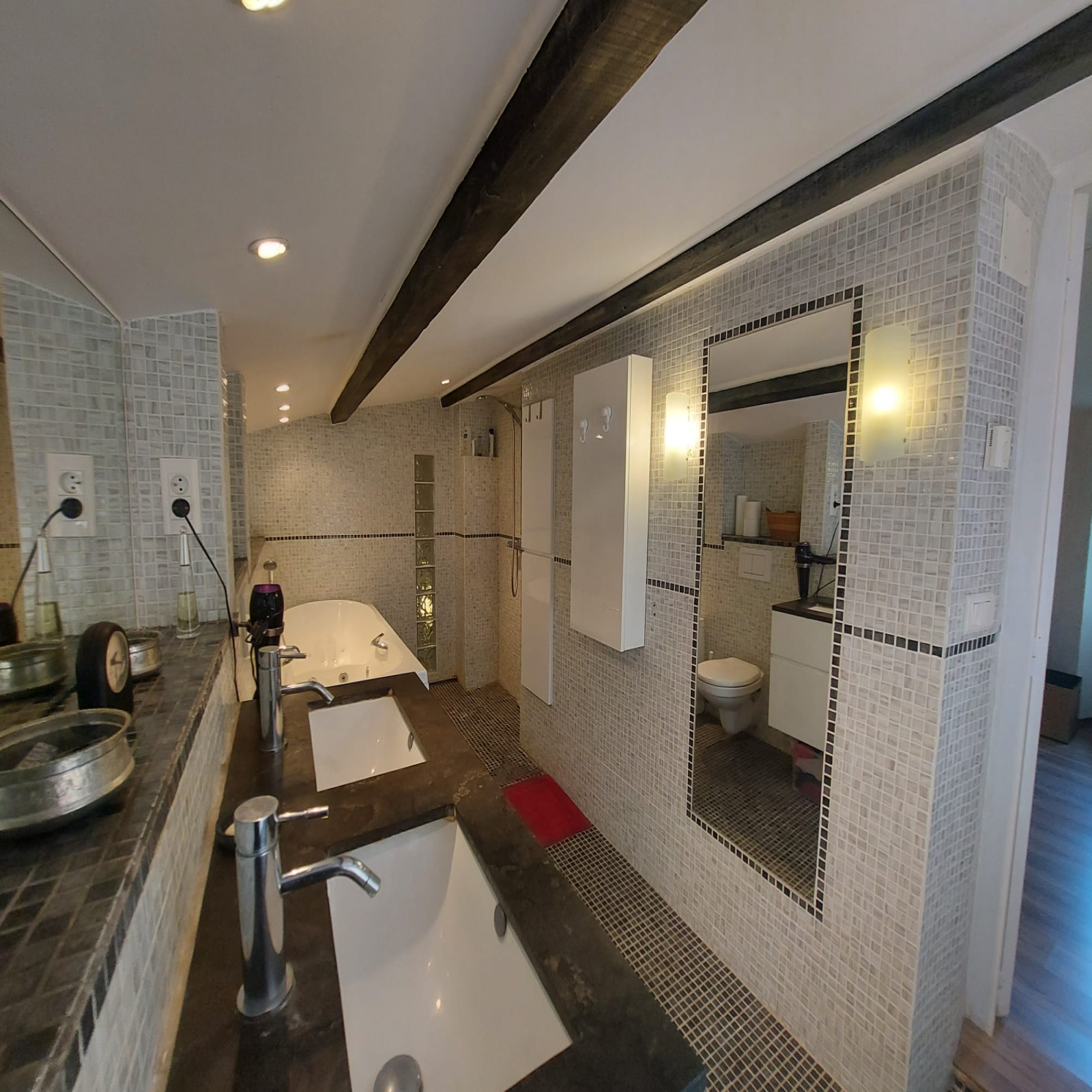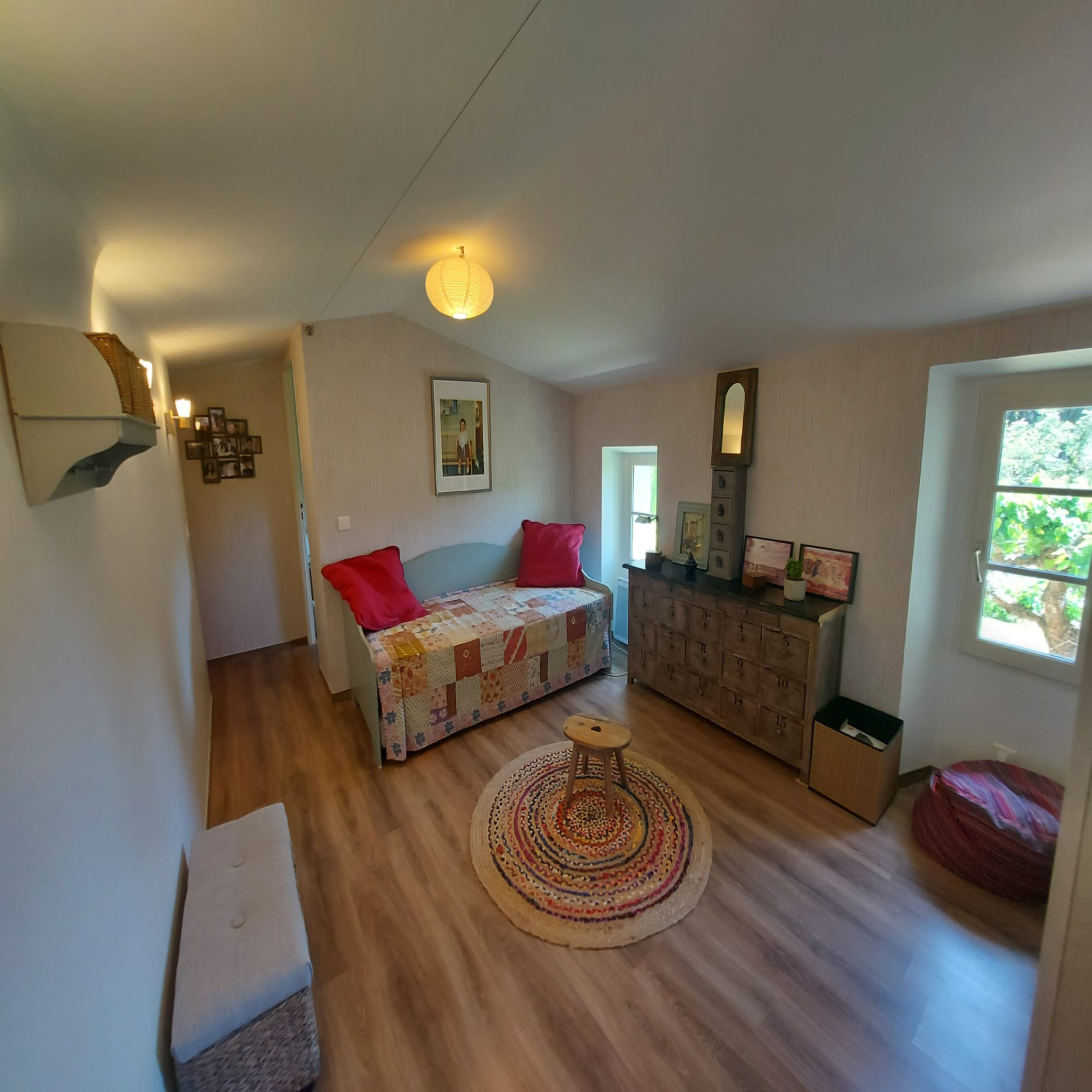 La propriété offre également un appartement complètement indépendant de 80m2 avec séjour/cuisine, deux chambres, une sde, un wc et une très belle terrasse végétalisée et très intimiste.