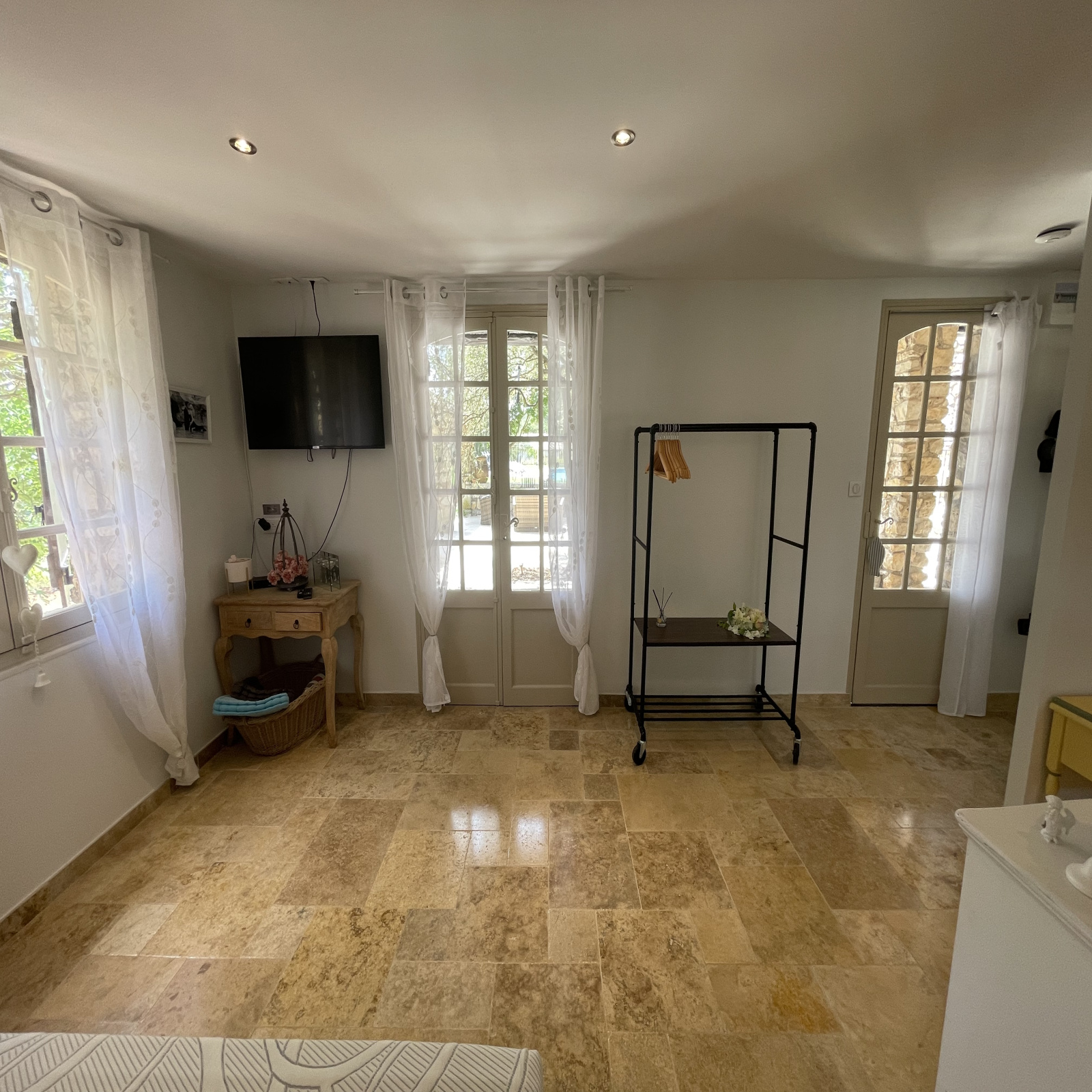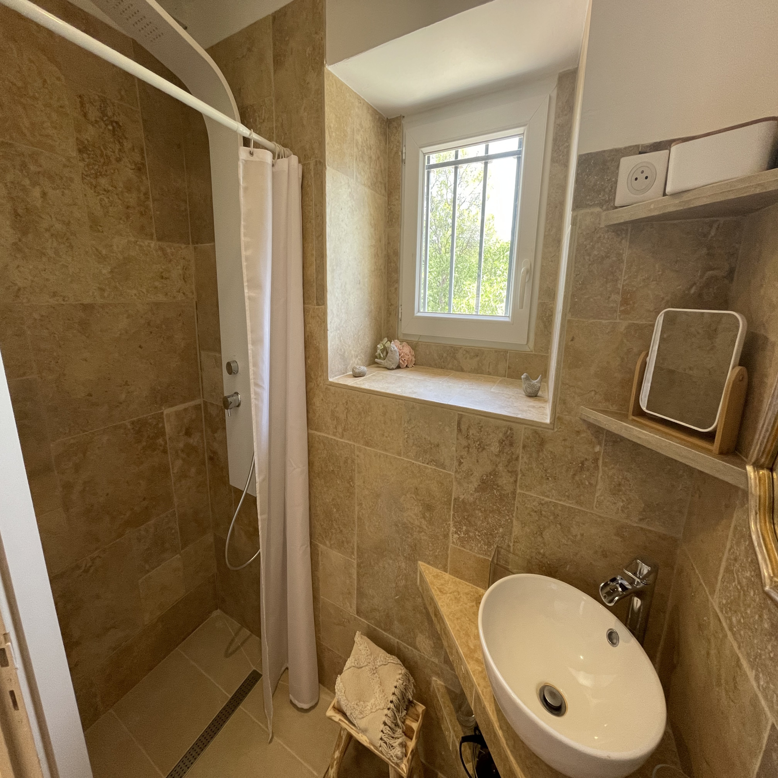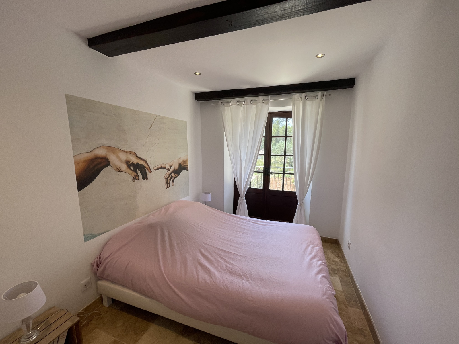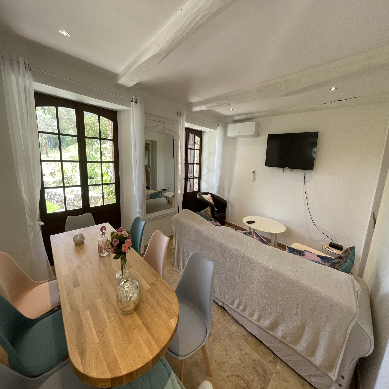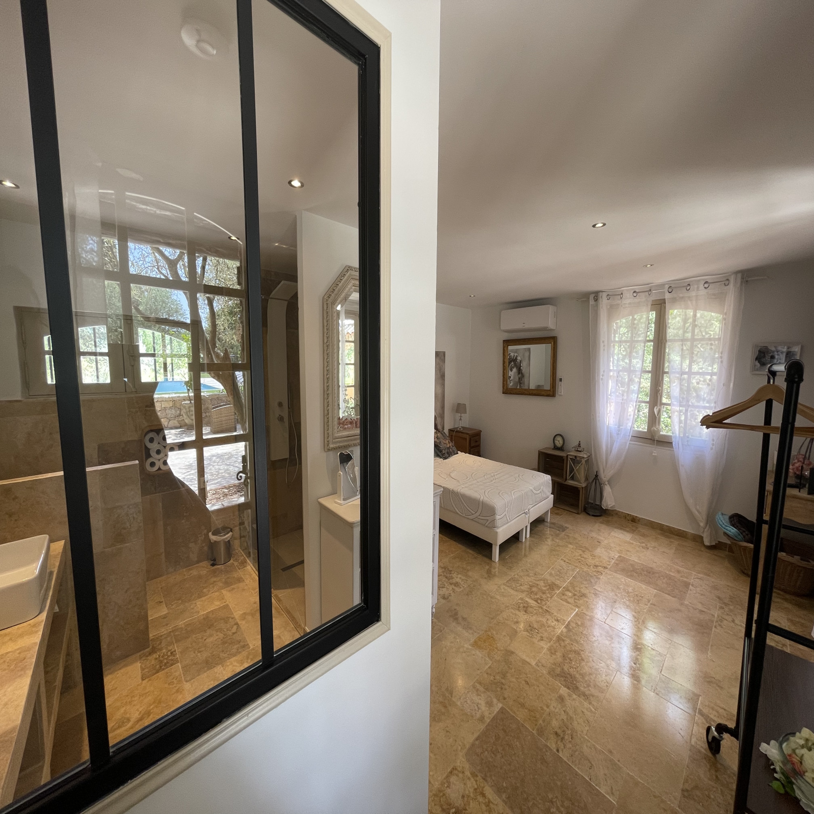 La maison climatisée a été entièrement rénovée avec goût et avec des matériaux de qualité.