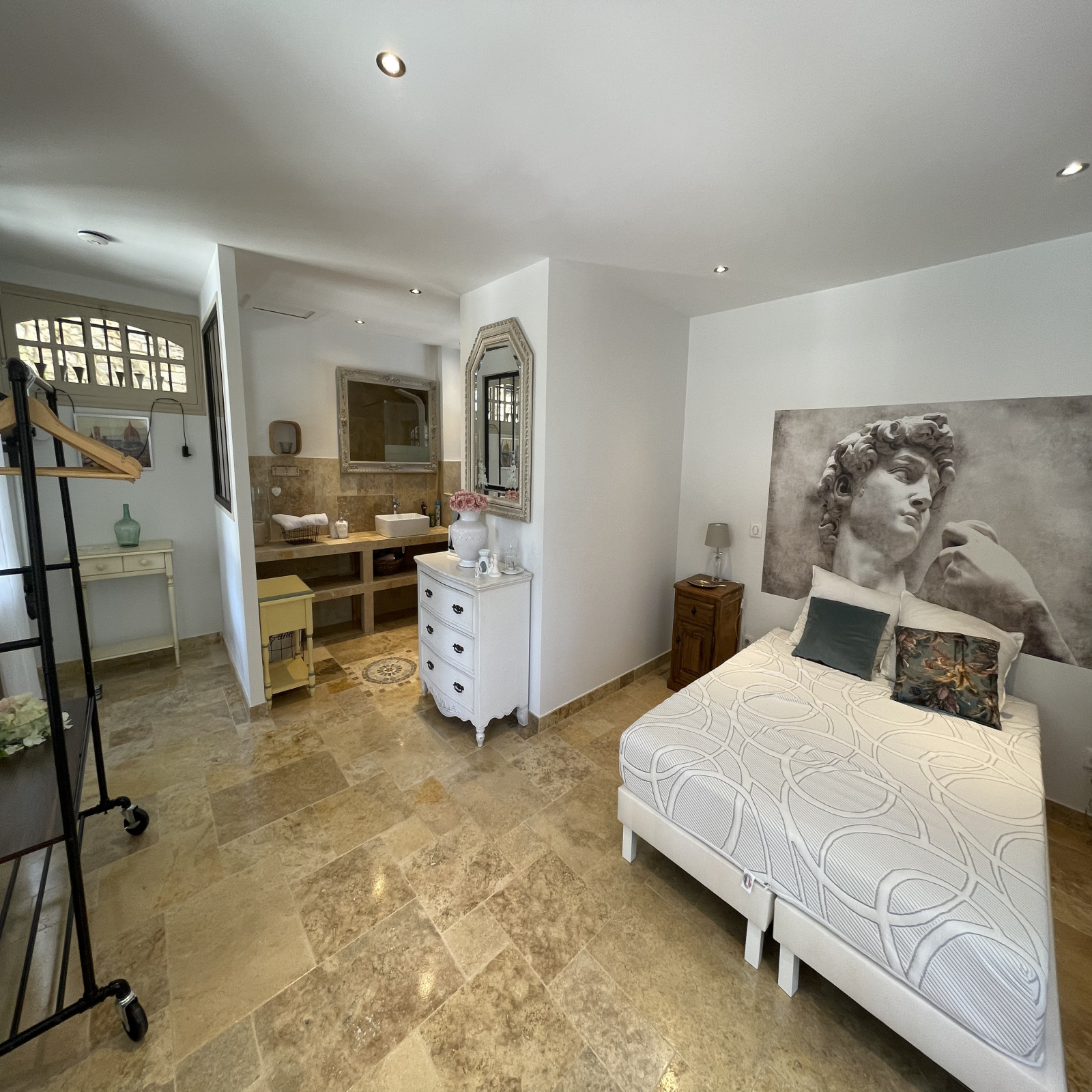Une suite principale indépendante de 24 m² avec sde en travertin et rangement est attenante à la bastide. Une buanderie entièrement équipée viendra compléter ce bien d'exception.