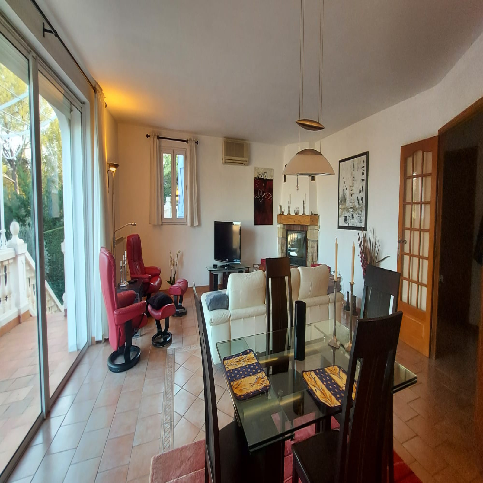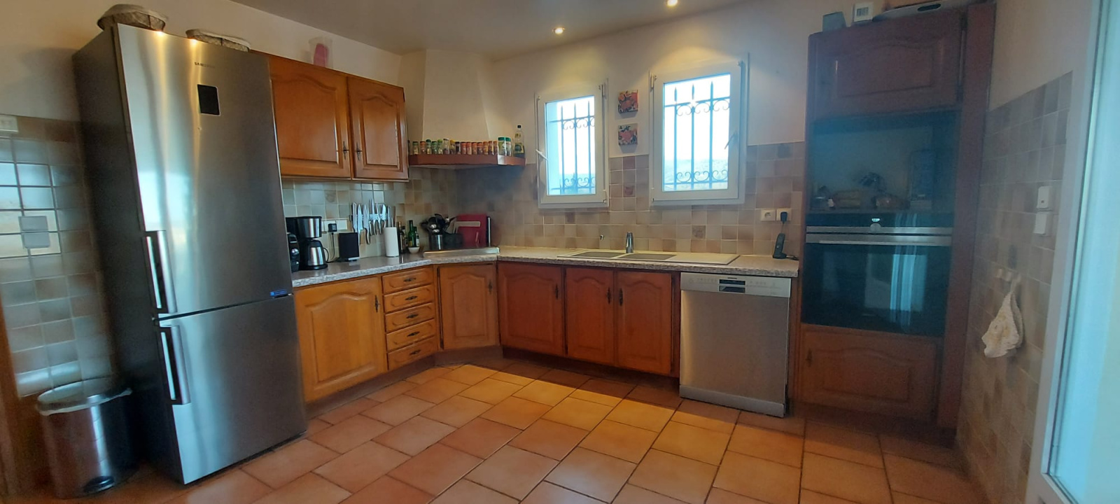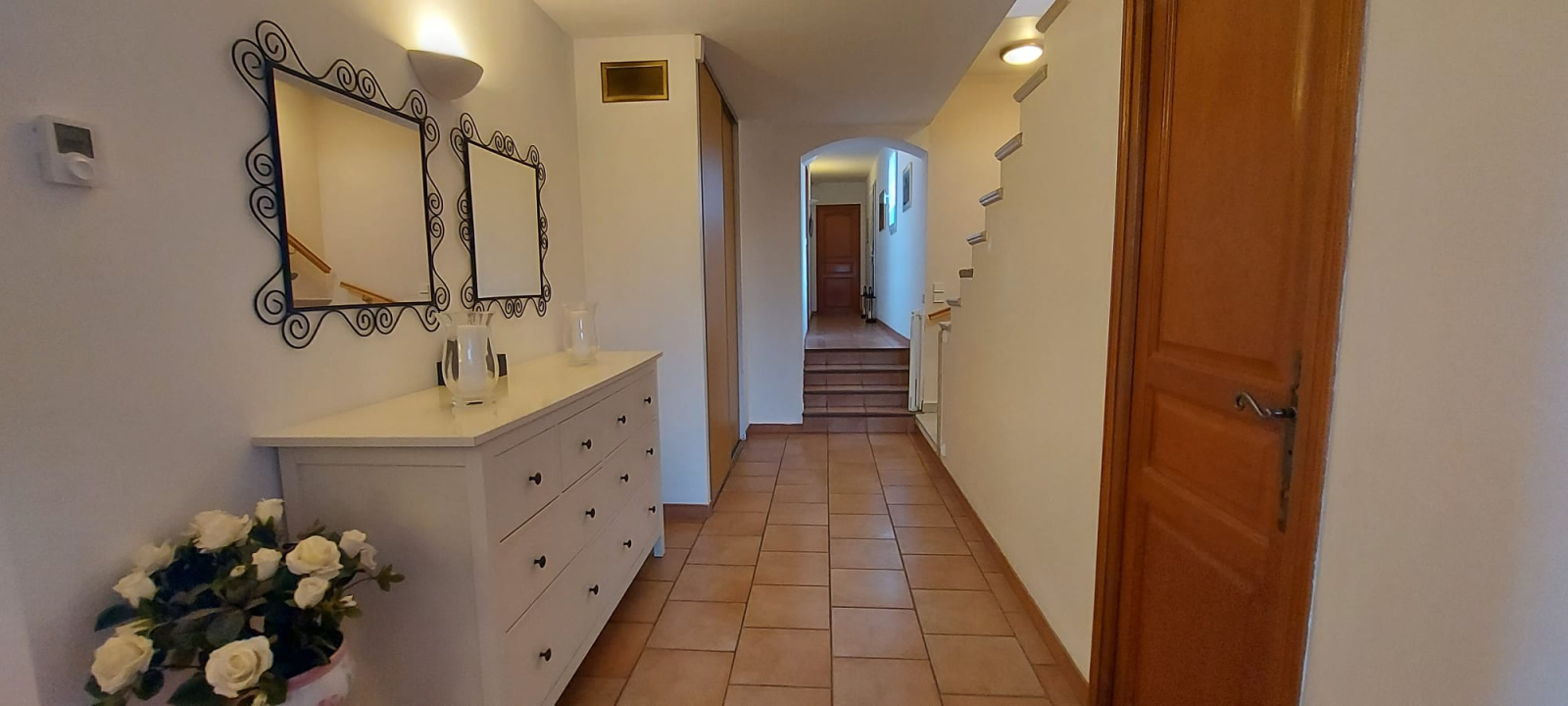 De plain pied, la villa s'ouvre sur une entrée avec vestiaire, un beau séjour/salon avec cheminée qui se prolonge par de grandes baies à galandage sur une terrasse avec une vue dégagée sur les collines environnantes ; une cuisine équipée indépendante qui s'ouvre sur la véranda puis son arrière-cuisine. Sur le même niveau deux belles suites parentales avec chambre, placard, sde et wc. A l'étage deux autres chambres prolongées d'une terrasse, un bureau une sde et des toilettes.