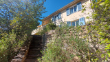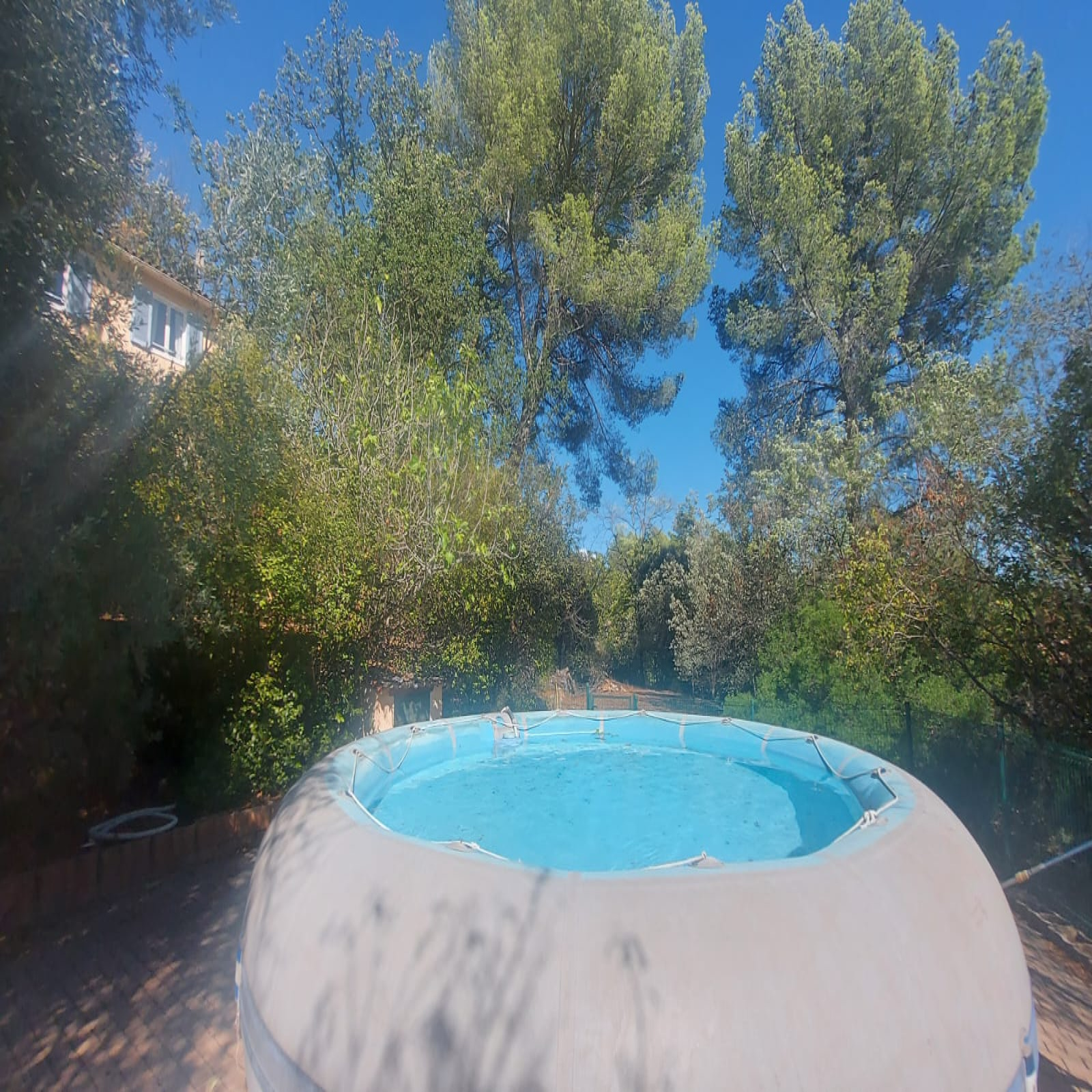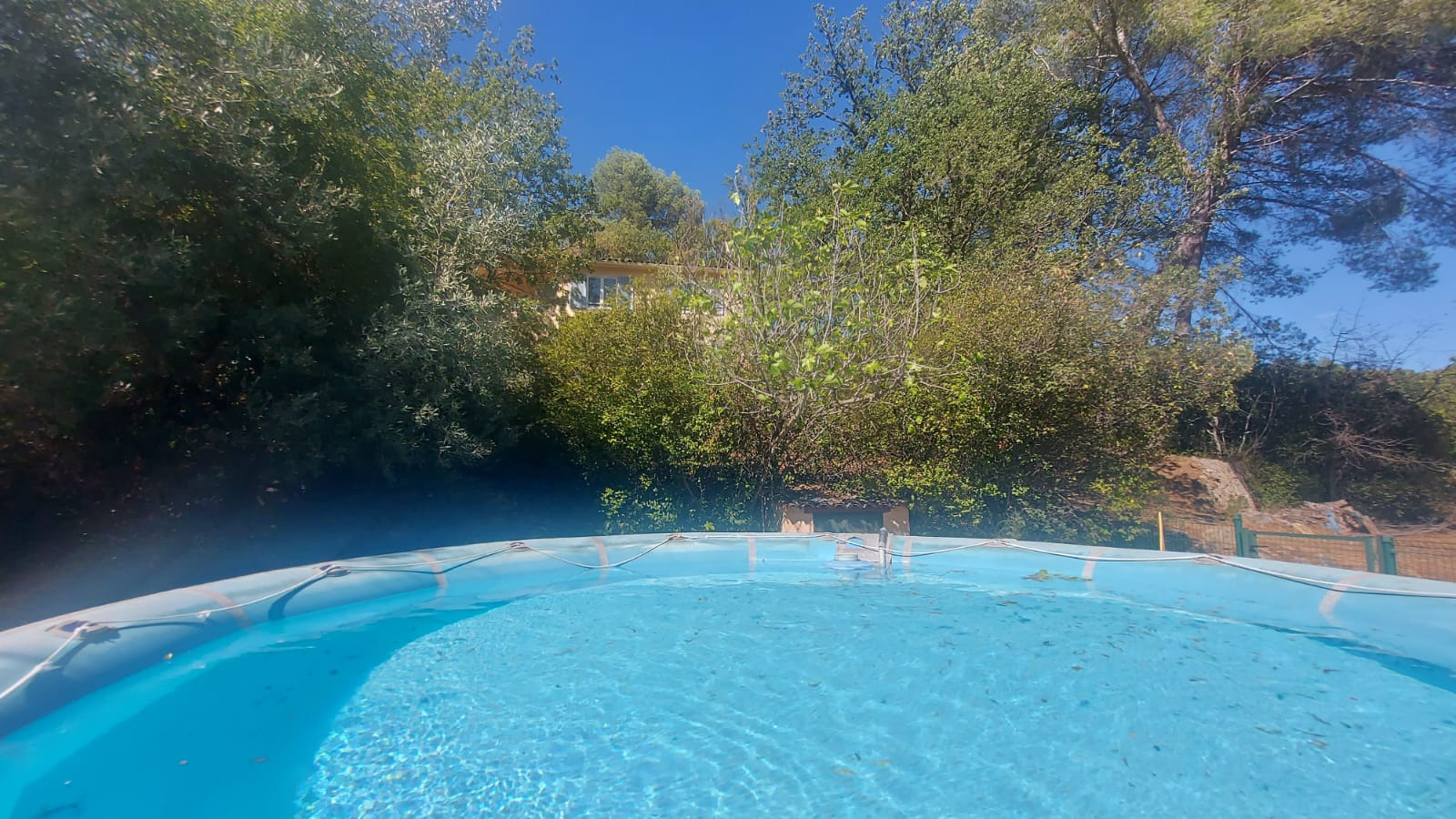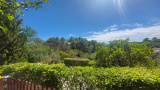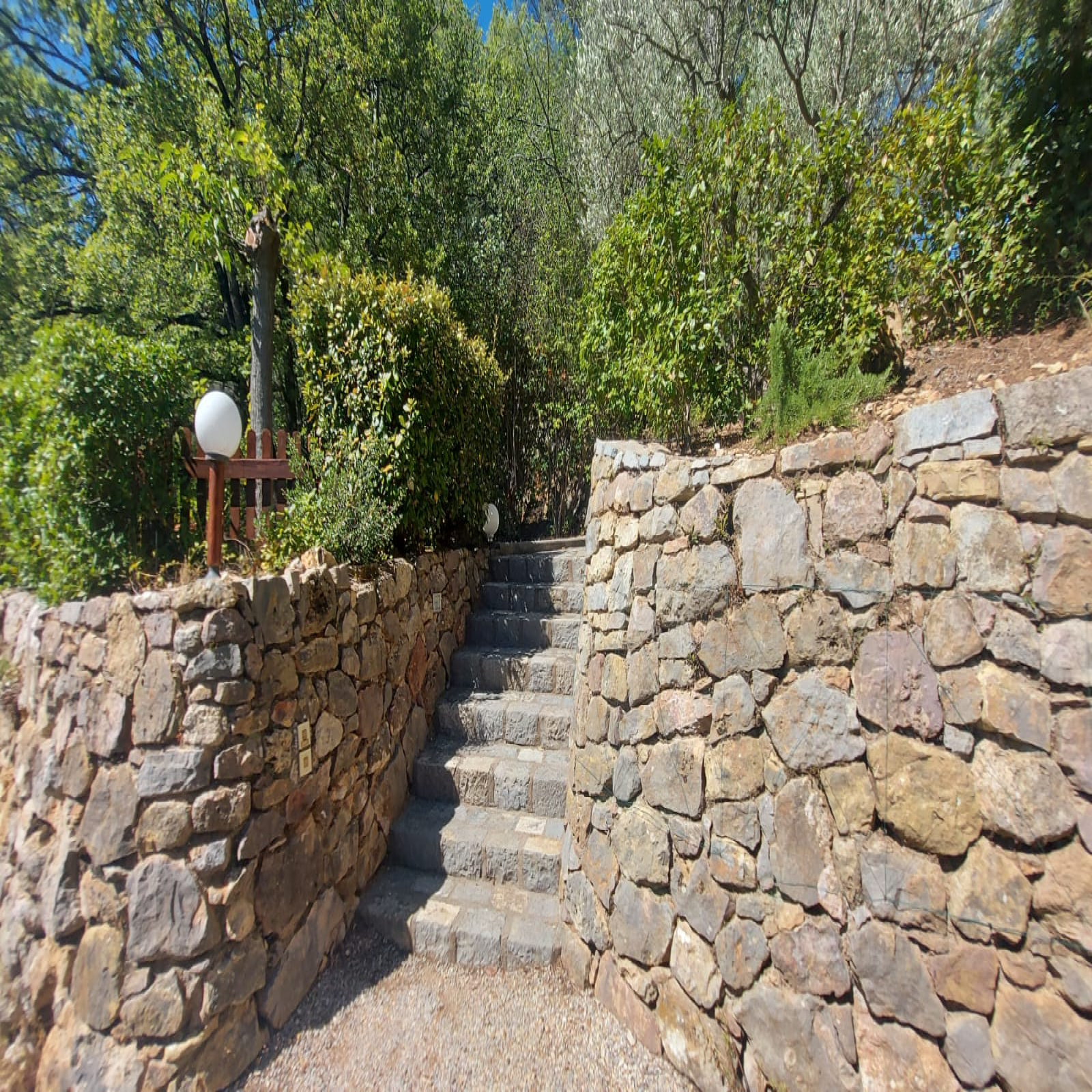 Le jardin très arboré en restanque, propose différents espaces de vie dont un espace piscine.