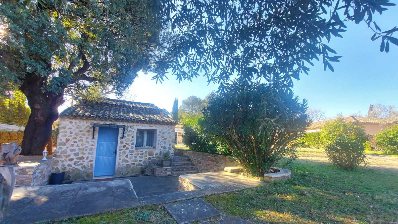 La propriété parfaitement entretenue dévoile un très beau volet paysager composé d'oliviers, de muriers platanes, de chênes et de massifs méditerranéens.