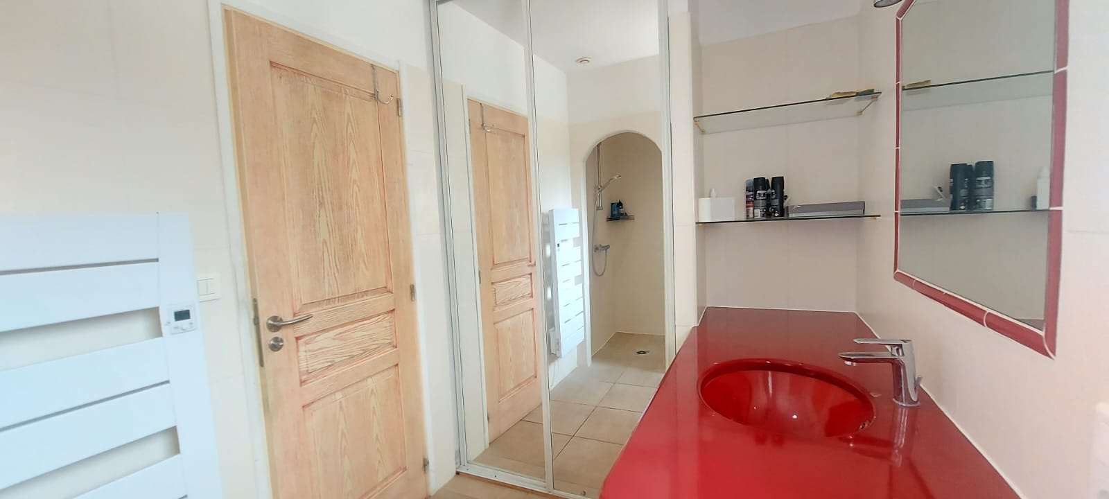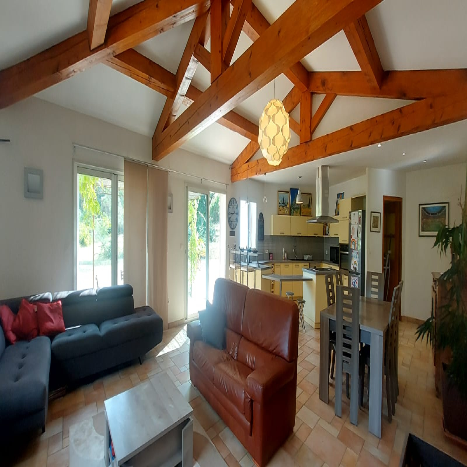 La maison est composée d'une superbe pièce de vie de 70m2 séjour/salon cuisine équipée ouverte inondée de lumière, avec un plafond cathédrale, trois chambres avec placard dont la suite principale équipée d'un dressing, une salle d’eau privative et un wc puis une seconde salle de bains, un toilette invités, une buanderie et un cellier de rangement.