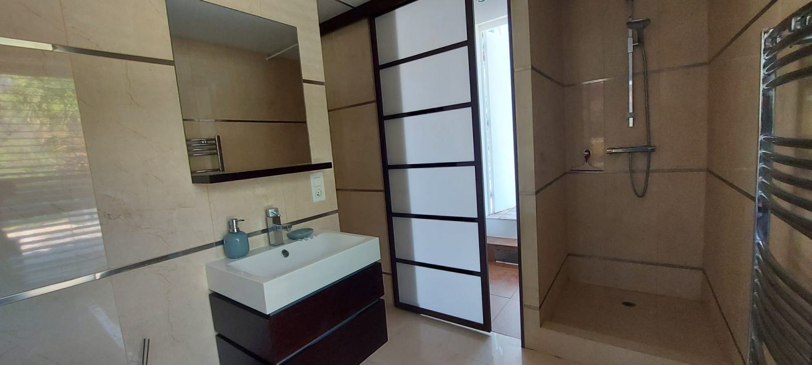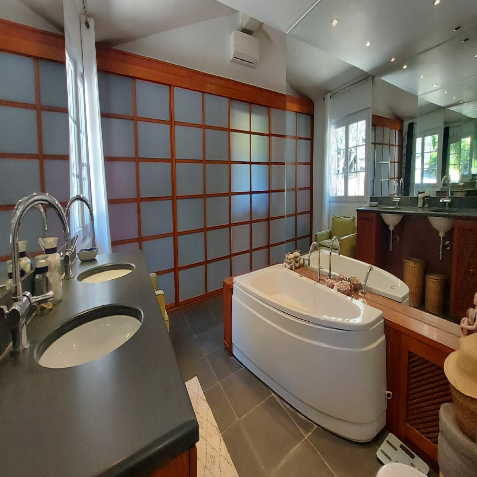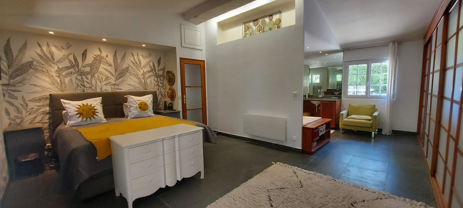 L'entrée est colorée et permets par une voute l'accès à un lumineux séjour salon de 80m2 qui se prolonge par de grandes baies vitrées sur les terrasses et le jardin. La cuisine américaine est fonctionnelle et neuve. Côté nuit, trois belles suites avec chacune sa chambre, salle d'eau et dressing. La suite principale de 40m2 avec accès sur la terrasse est particulement confortable.