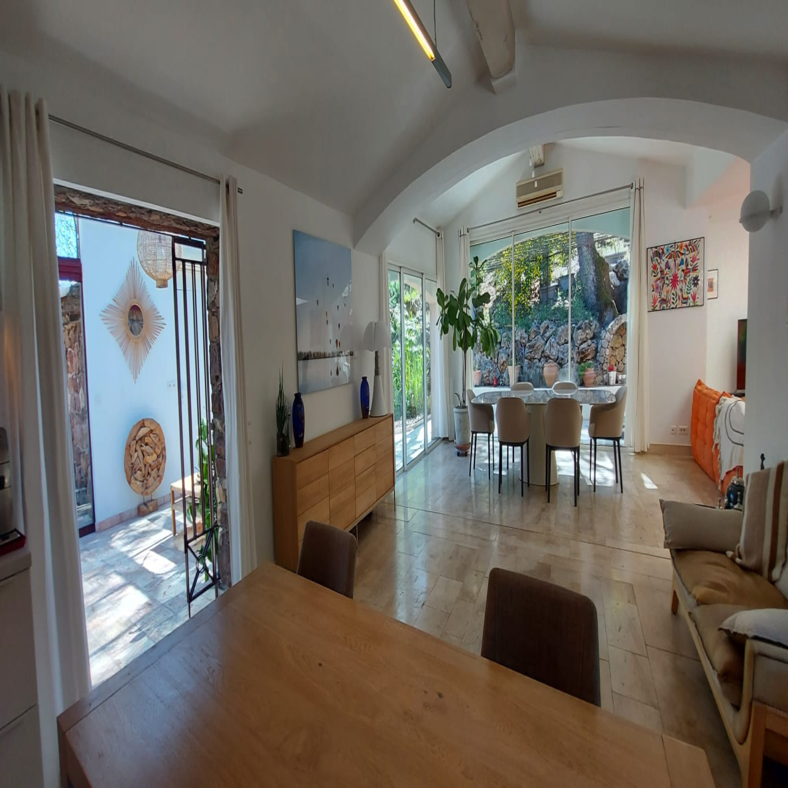 On appréciera l'authenticité de la villa, le contraste avec ses prestations intérieures modernes, le dôme du salon, la verrière qui prolonge le séjour, la luminosité de la villa, ses grandes baies vitrées qui permettent depuis l'intérieur de profiter du jardin tout au long de l'année.
