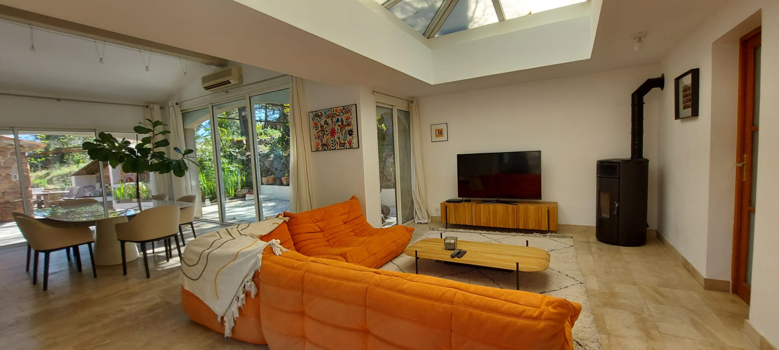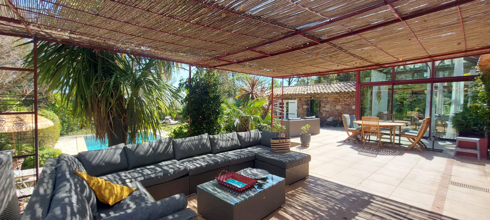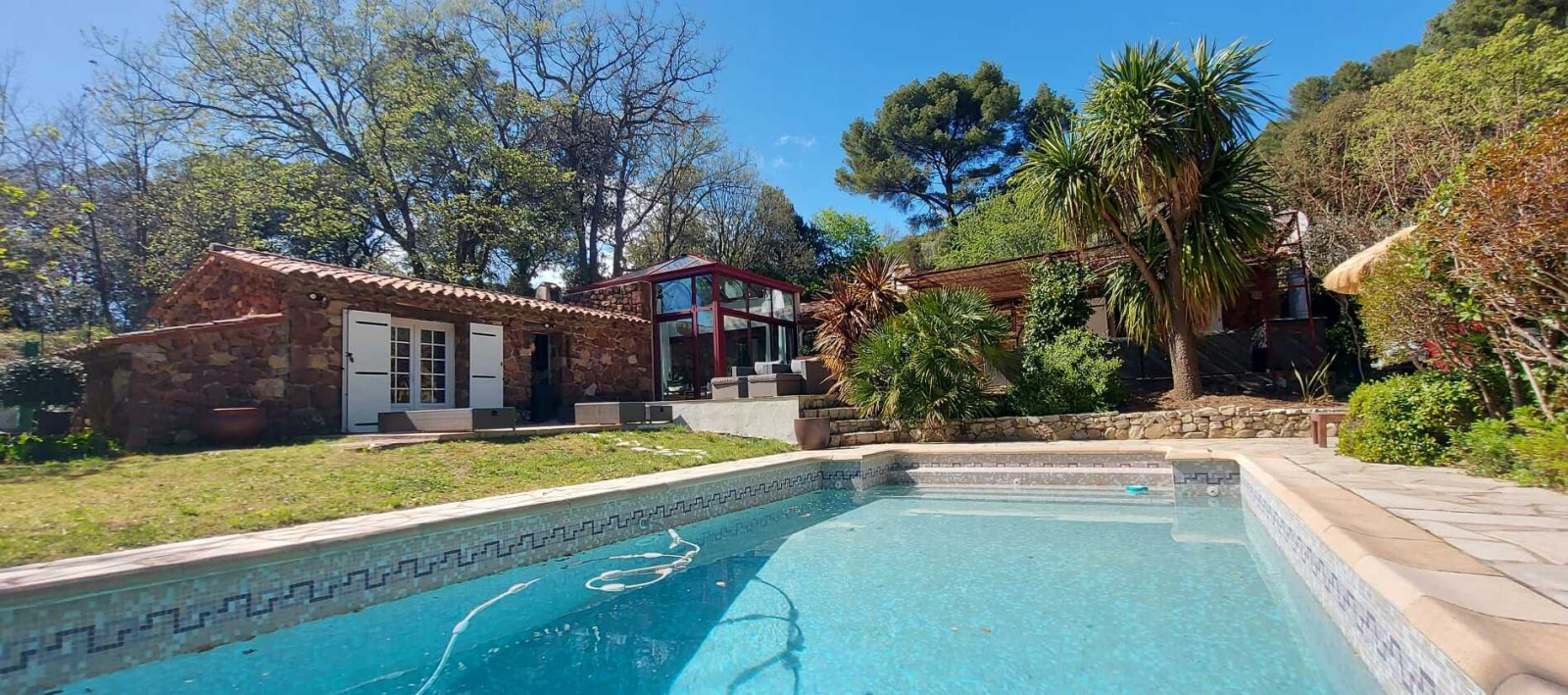 Cette villa de caractère de 190m2 est construite avec des pierres de l'Esterel sur une parcelle complantée de 3.500m2.
