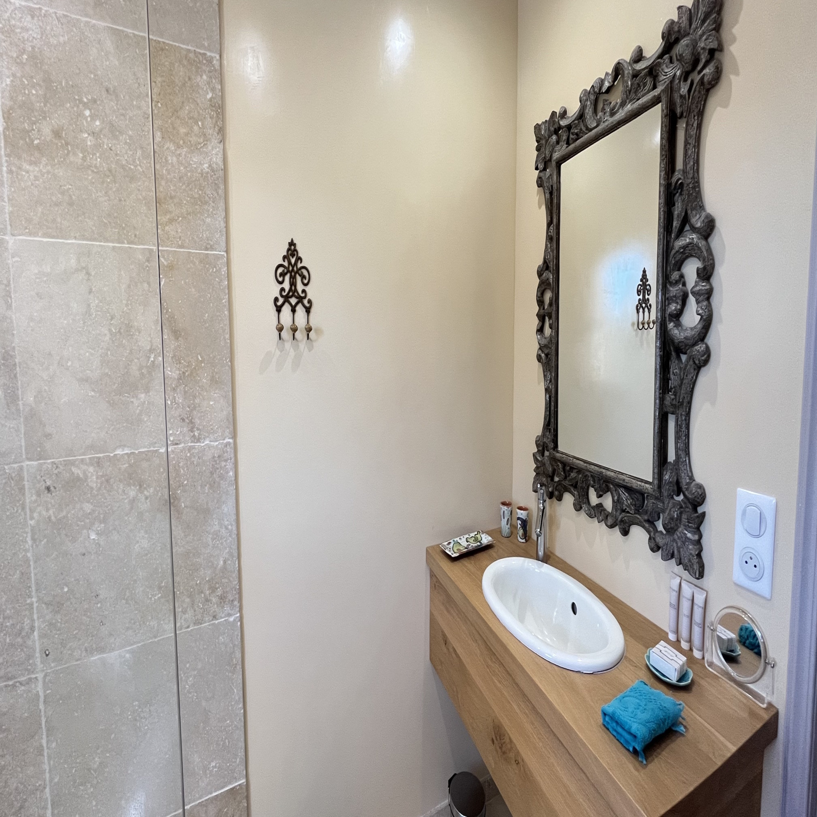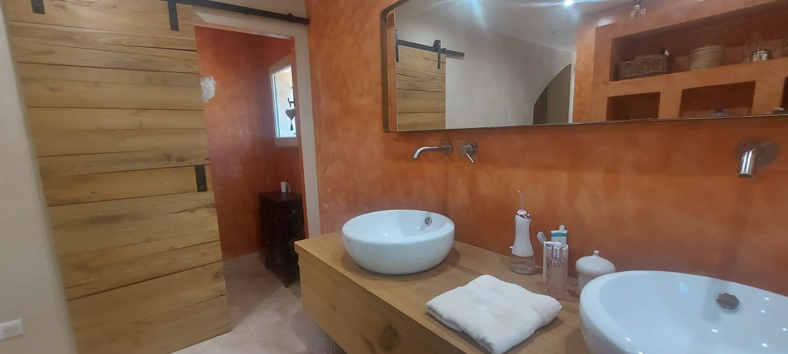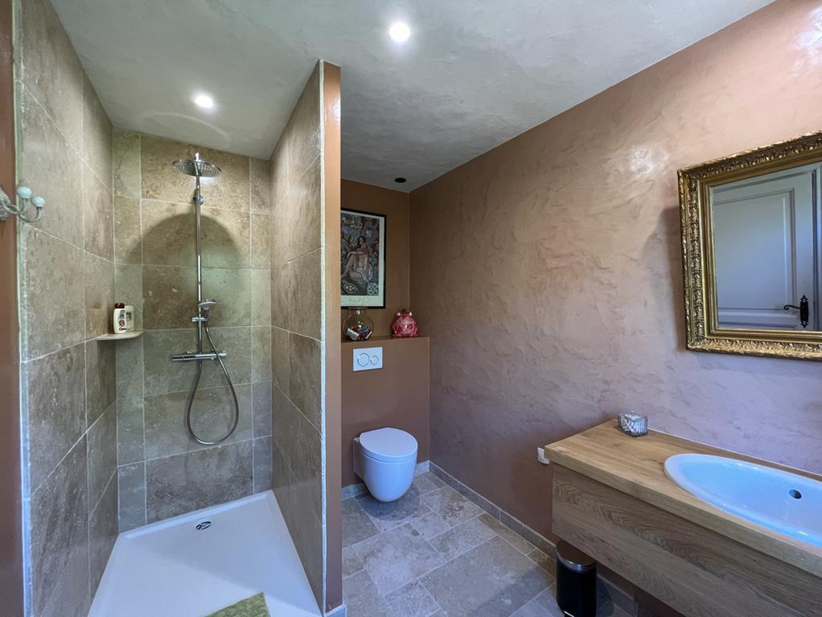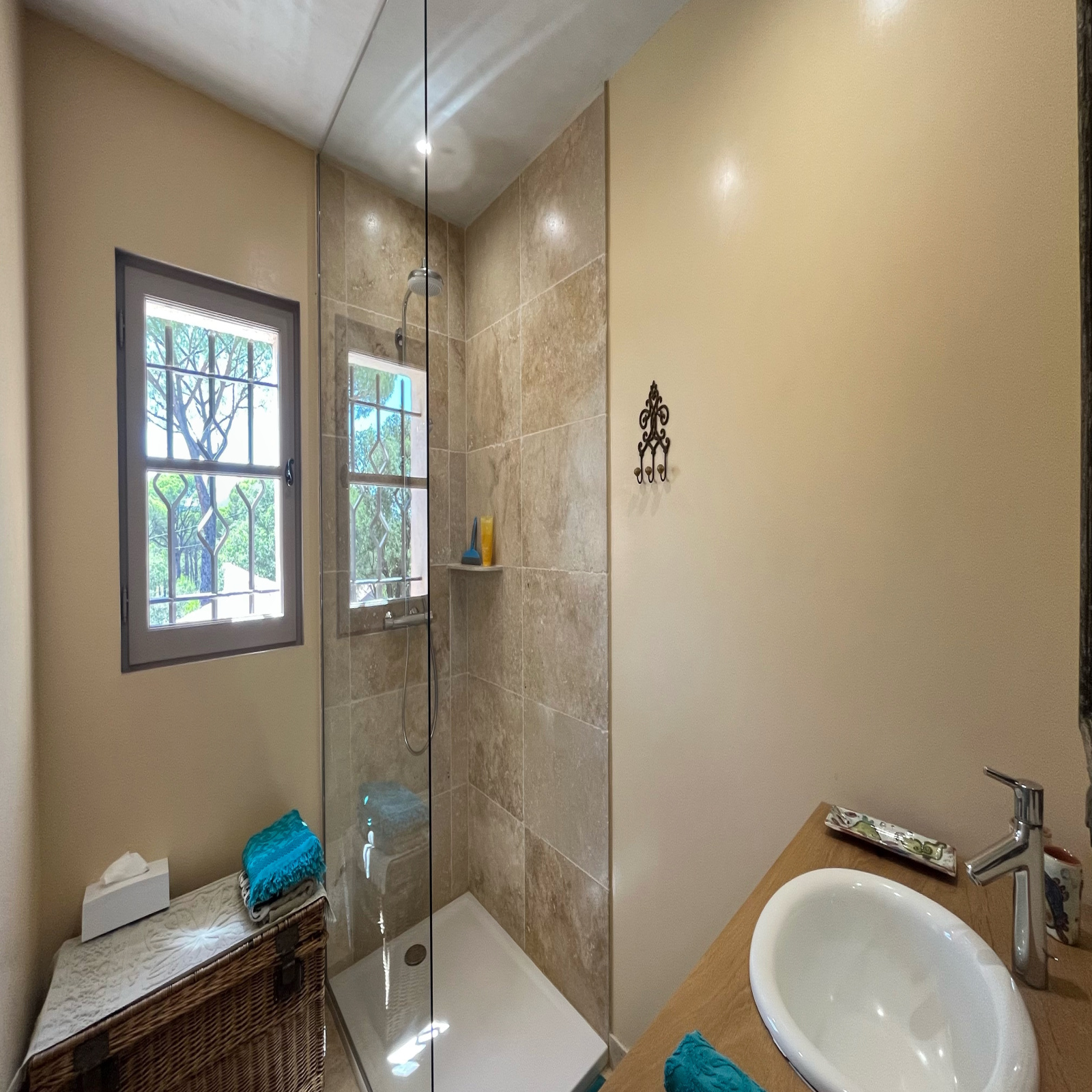 Niveau prestations, cette Bastide respecte les volumes et les codes d'Antan, tuiles à l'ancienne, ferronnerie, peinture à la Chaux au sable, béton ciré, sol en travertin, menuiserie extérieure double vitrage en bois massif, portes intérieures et parquet à l'étage en chêne massif, une climatisation gainable sur l'ensemble des pièces...