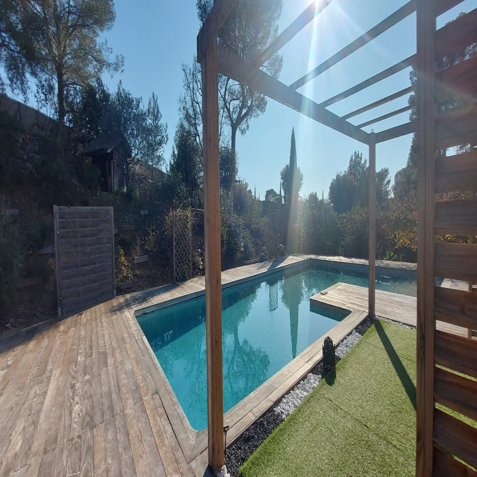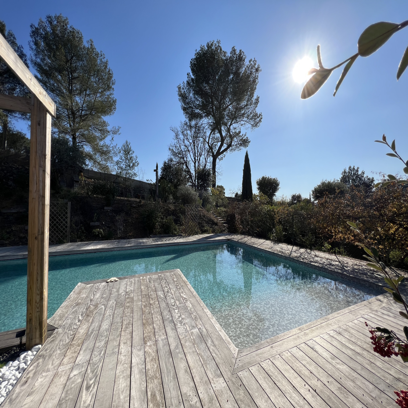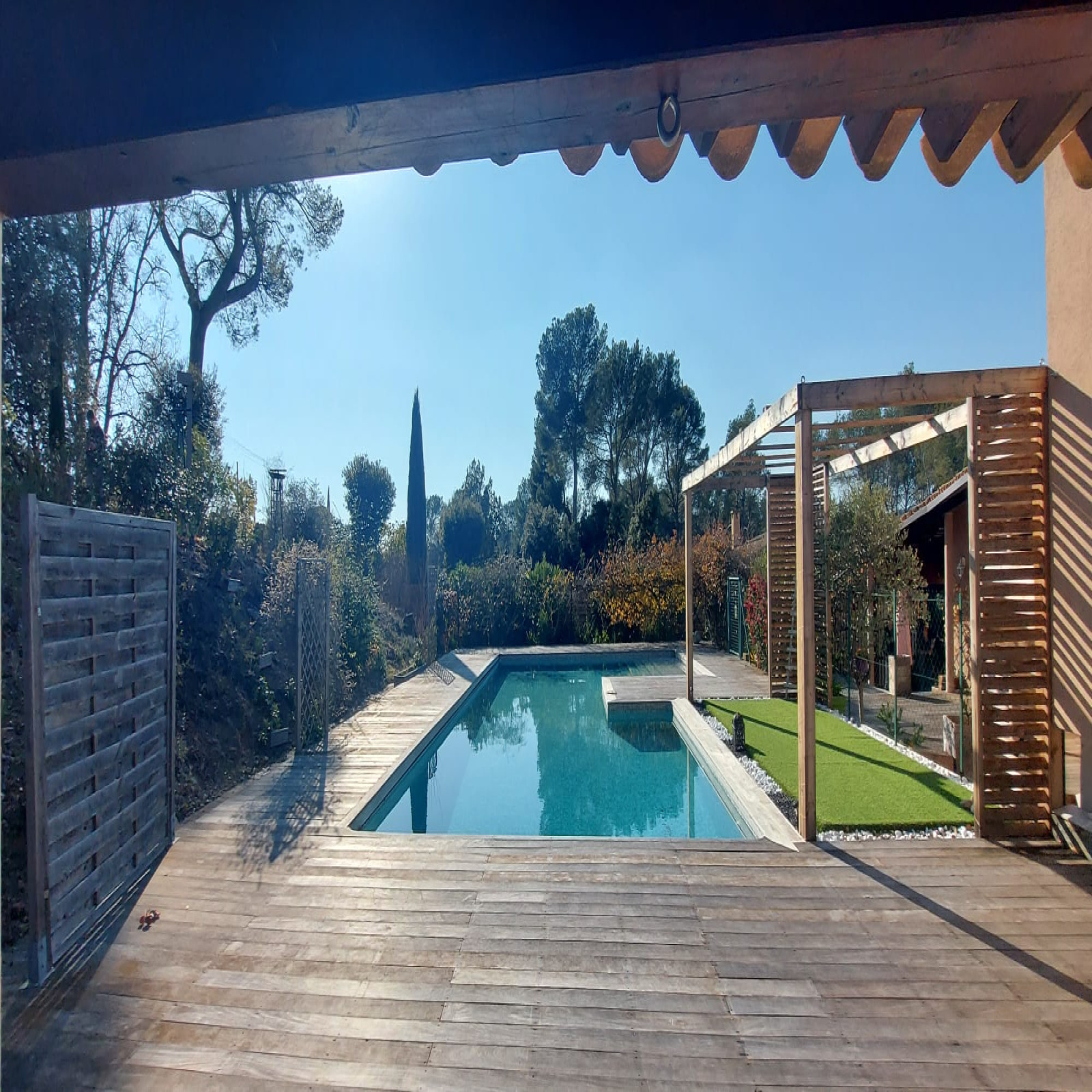 Cette villa moderne sera vous séduire par ses lignes épurées, son volume, sa luminosité, ses prestations modernes et soignées, sa superbe piscine maçonnée en forme libre, et son jardin intimiste et cozy qui s'ouvre sur la forêt.