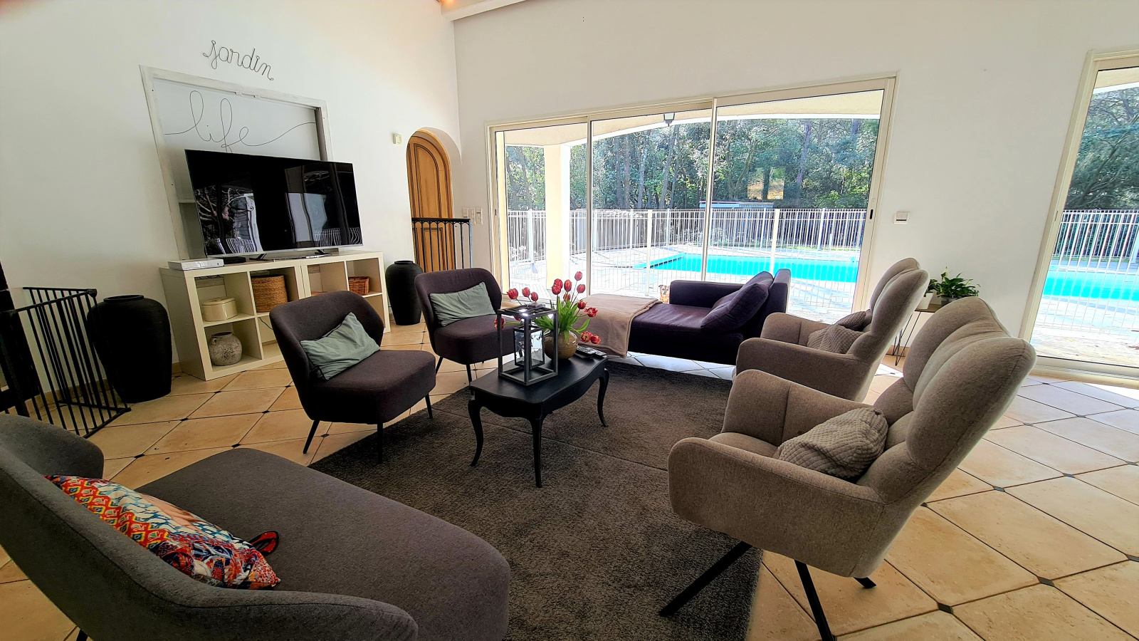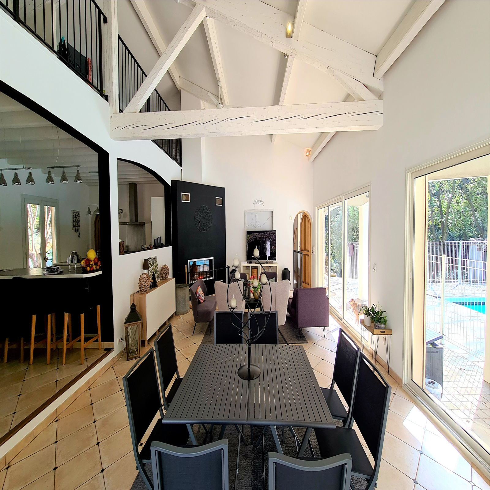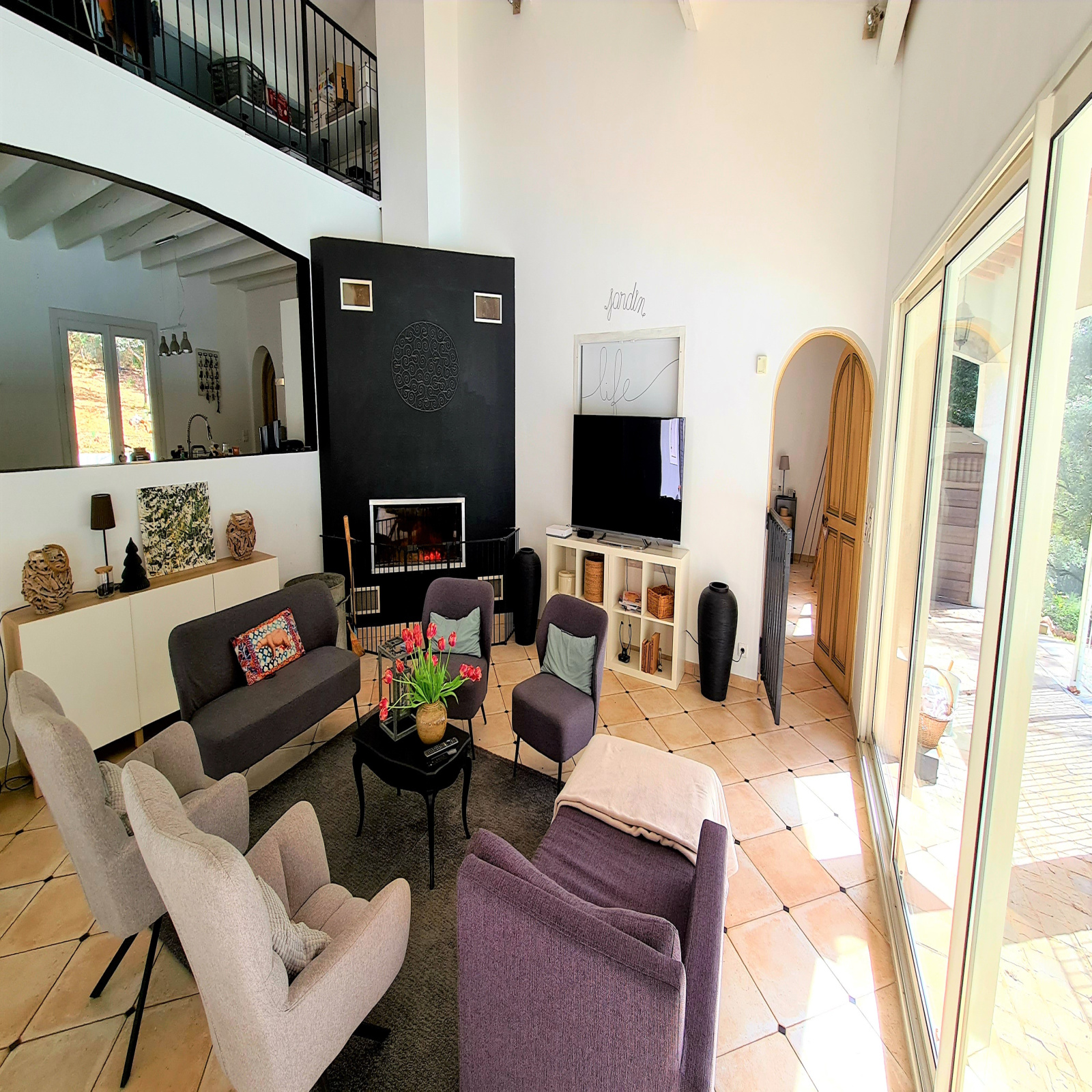 VENDU - Extender immobilier, vous propose notre “Coup de Coeur” pour cette propriété récente située sur Trans en Provence, à 10 minutes de la gare des Arcs , 7 minutes des commerces et de l’autoroute. En lisière de forêt, au CALME absolu, sans aucun vis à vis elle est édifiée sur un terrain de 5 000 m2, et est équipée d’une piscine au sel 11.5 x 5, un boulodrome, d’un box à chevaux, parfaite pour les amoureux de calme et de nature, mais aussi d’une belle cuisine d’été idéale pour les moments de détente entre famille et amis sur une terrasse de 60 m2. De plain pied d’une superficie de 275 m2 environ, vous trouverez un grand séjour d’environ 100 m2 , avec sa cheminée et son récupérateur de chaleur , exposé plein SUD, cuisine équipée, suite parentale de 35m2 avec salle d’eau et dressing, 3 chambres de 12 à 14 m2, salle de bains, WC indépendant, arrière cuisine, une grande mezzanine de 45 m2, un studio attenant à la villa mais disposant de son entrée indépendante. Le plus, un sous-sol aménagé en appartement avec cuisine, salle d’eau avec WC . Aucuns travaux ne sont à prévoir, la maison est parfaitement au goût du jour. A visiter rapidement, pour toute demande de renseignement complémentaire , merci de contacter Sandrine Cesarini au 06 20 94 83 10.