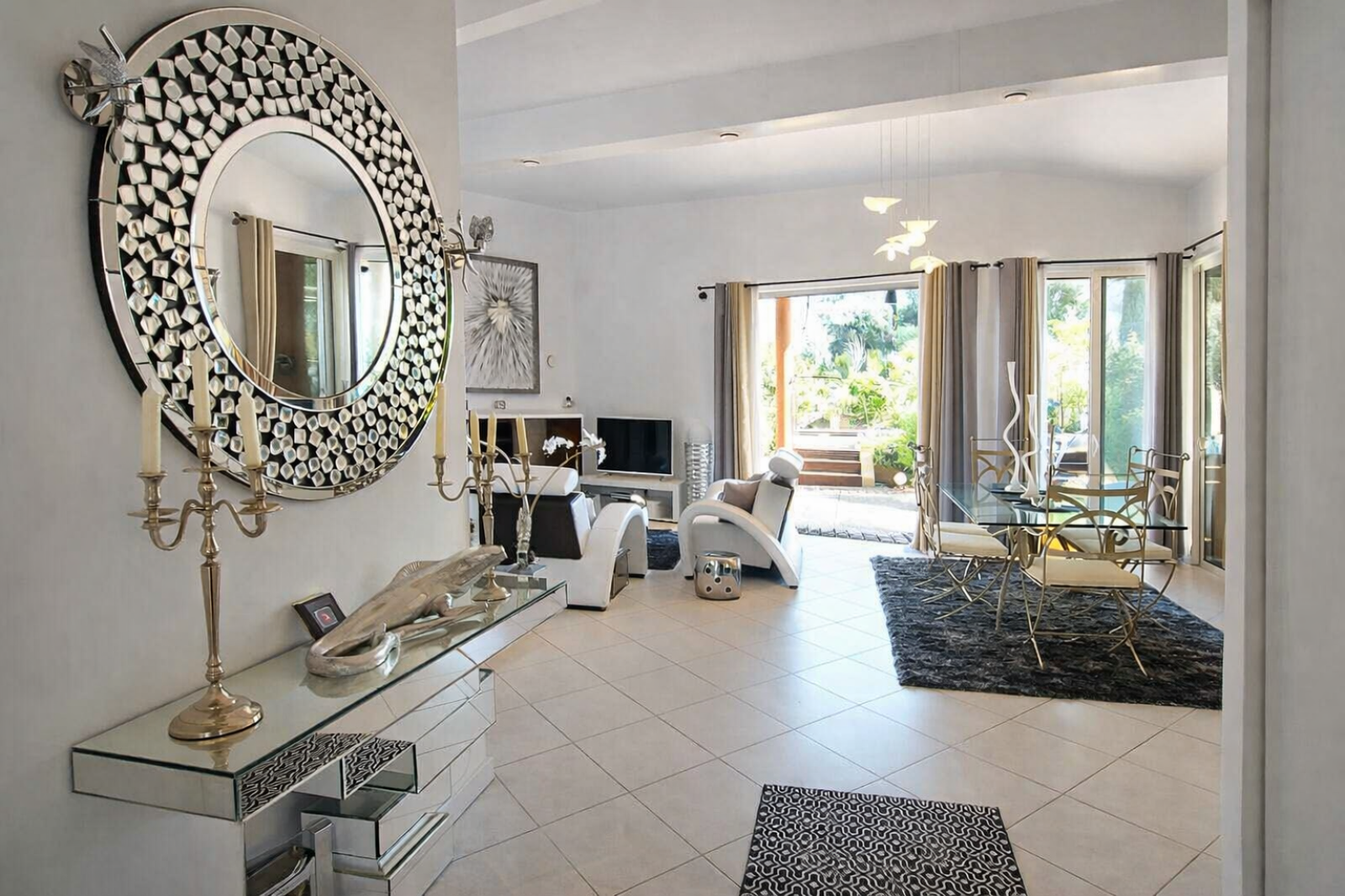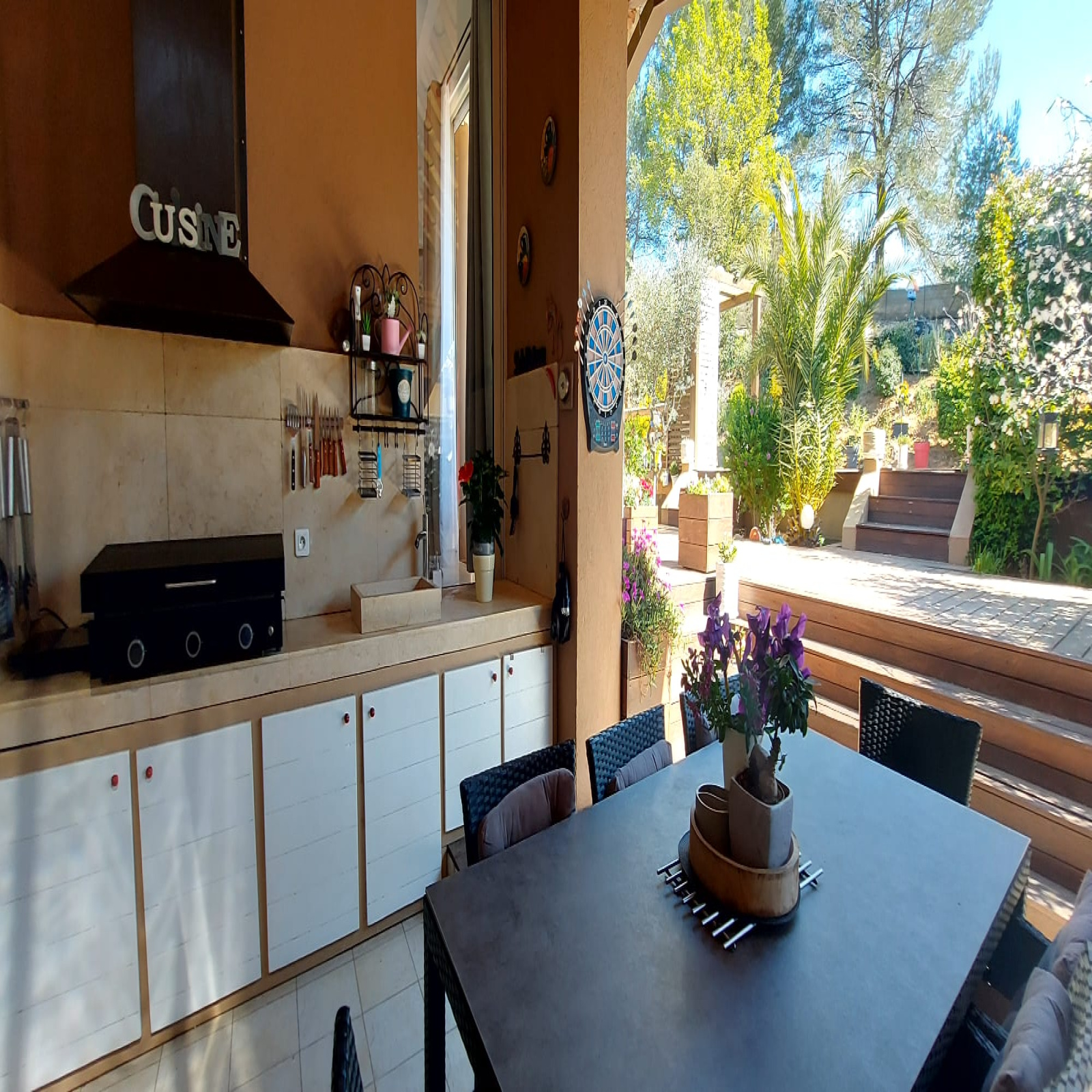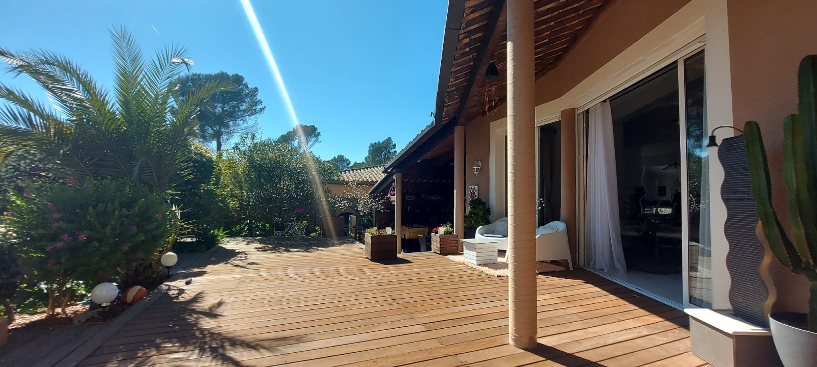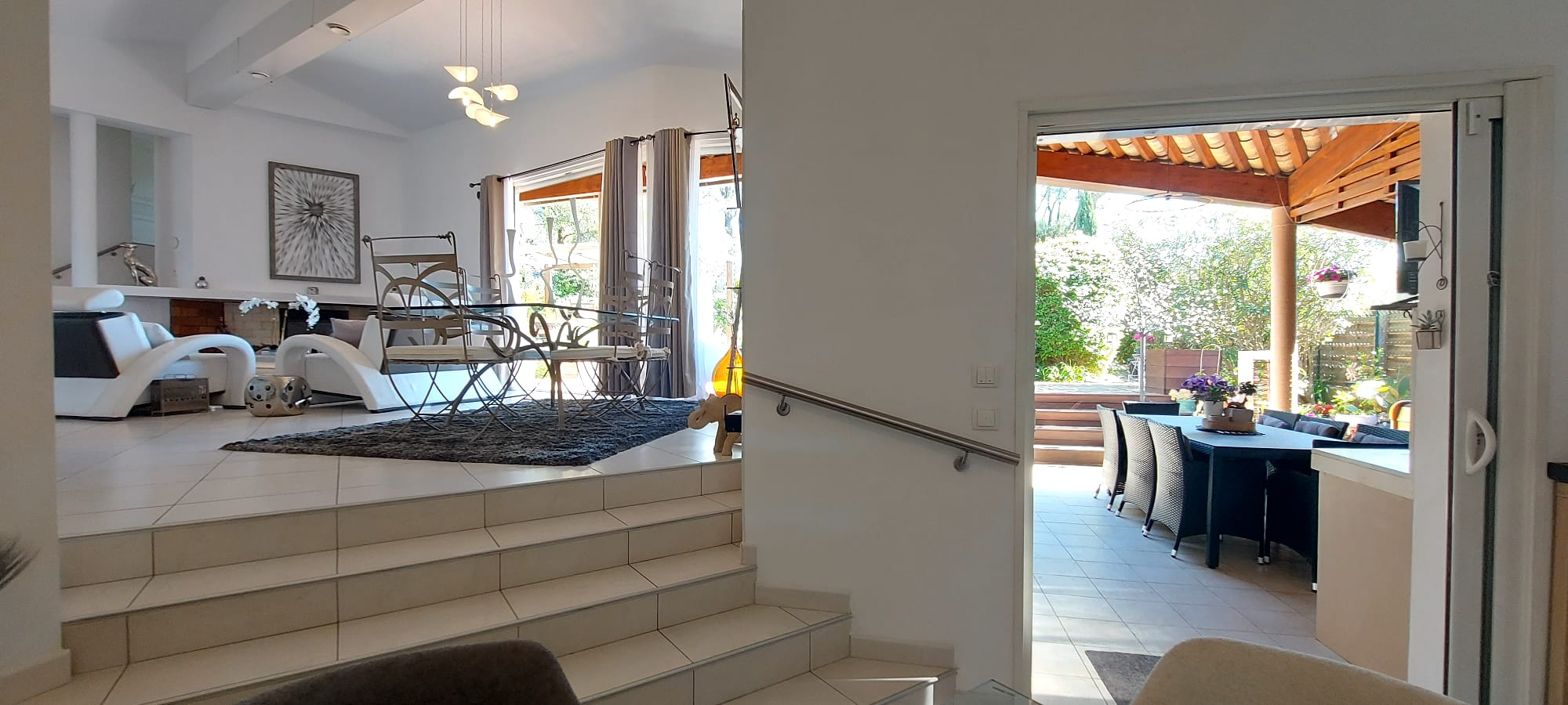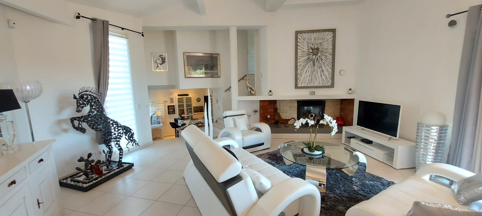 Les prestations sont à la hauteur, chauffage et rafraîchissement au sol par pompe à chaleur, cheminée insert avec diffusion de l'air chauffé dans les pièces de vie, baies à galandage, volets roulants électriques, salles d'eau et cuisine design.... villa parfaitement agencée et entretenue à la décoration très soignée.