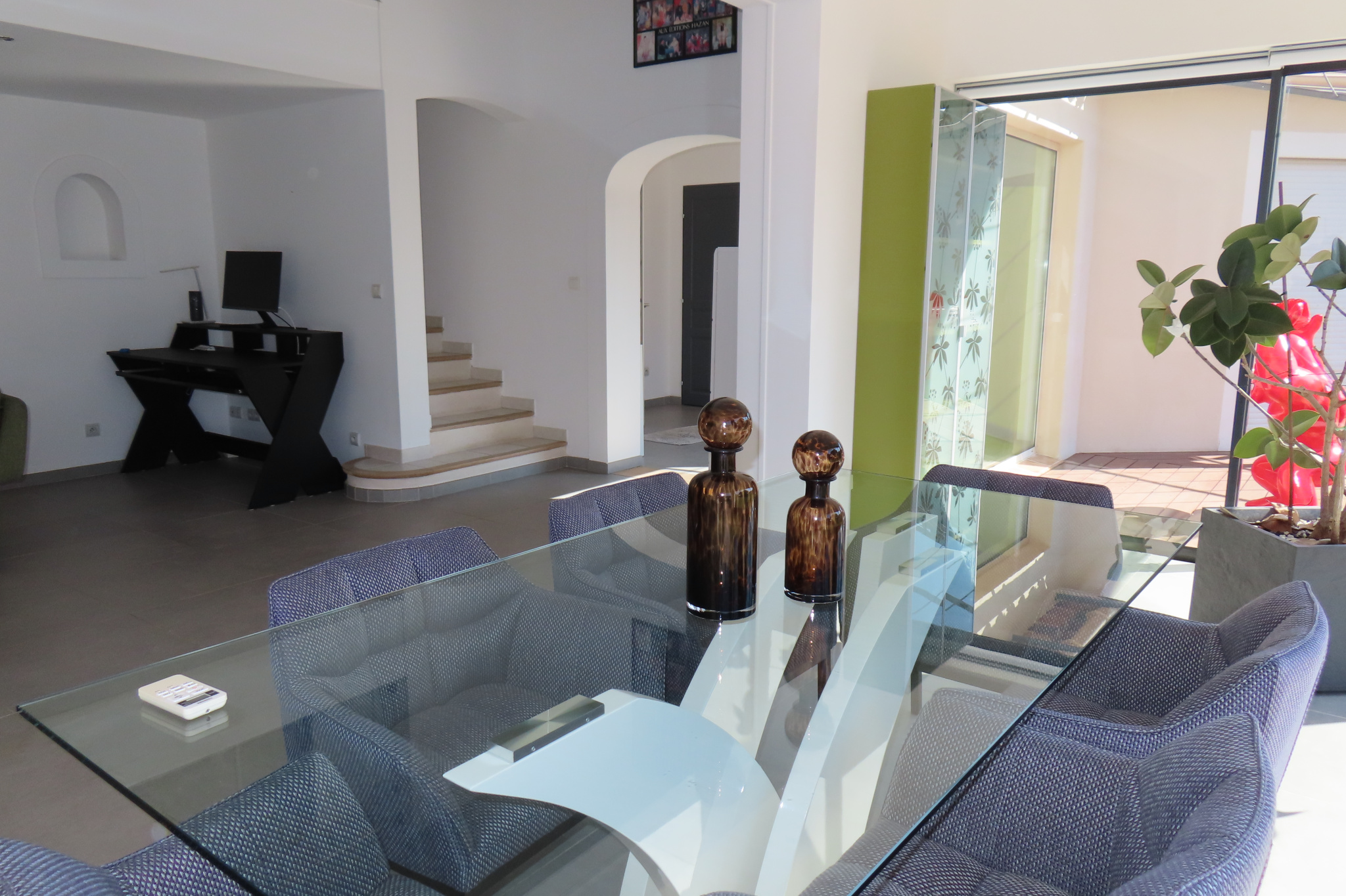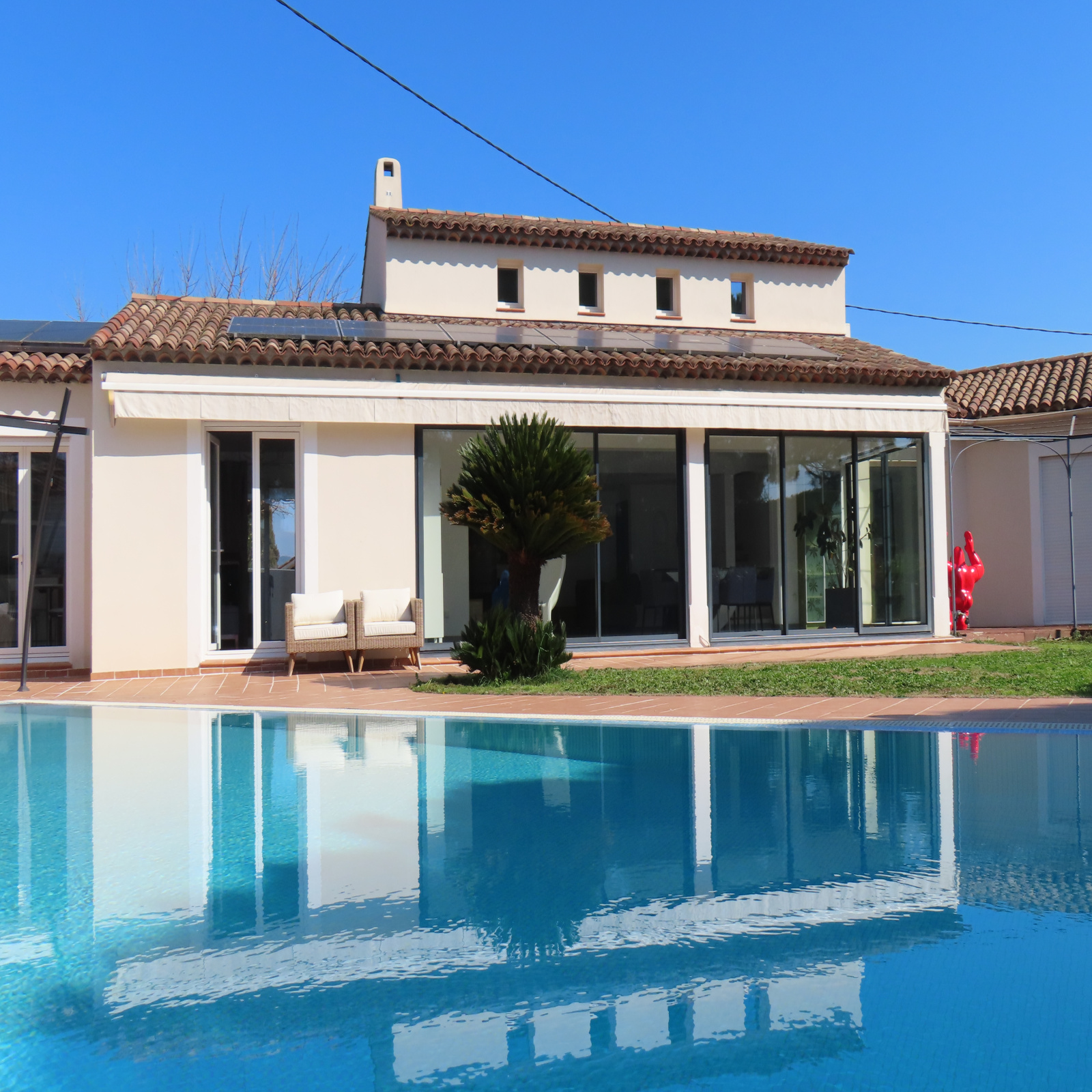 EXTENDER IMMOBILIER Vous présente, cette magnifique Demeure Contemporaine nichée à deux pas du Centre ville du Muy en fond d'impasse, au calme, elle offre une superfice de 287 m2 sur une parcelle constructible de 2 000 m2.