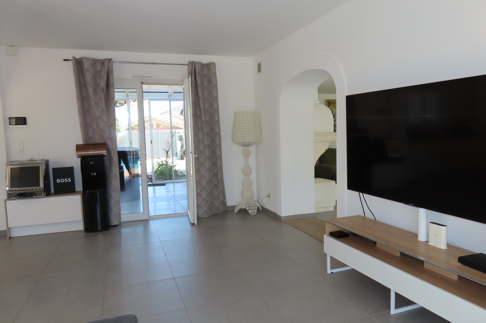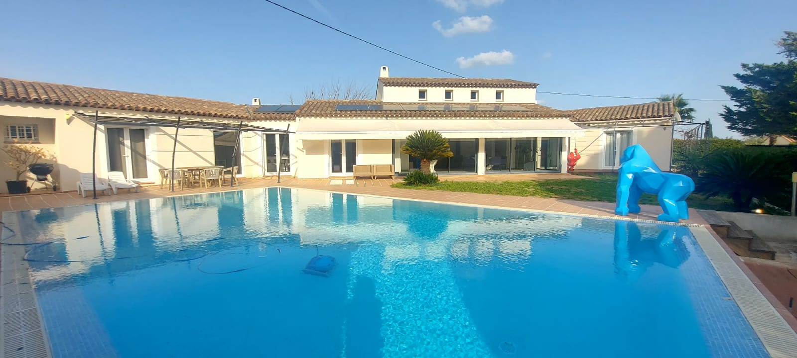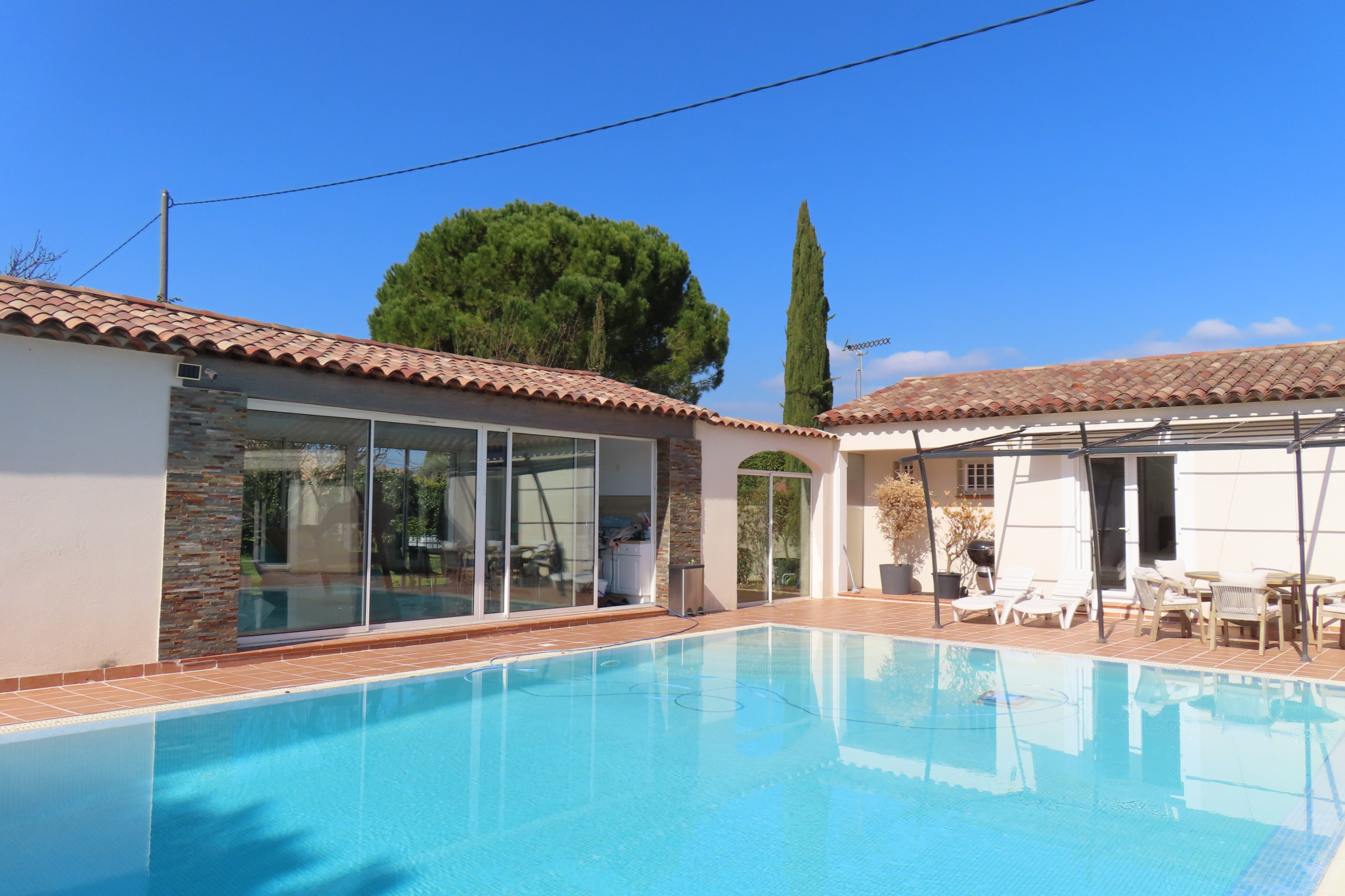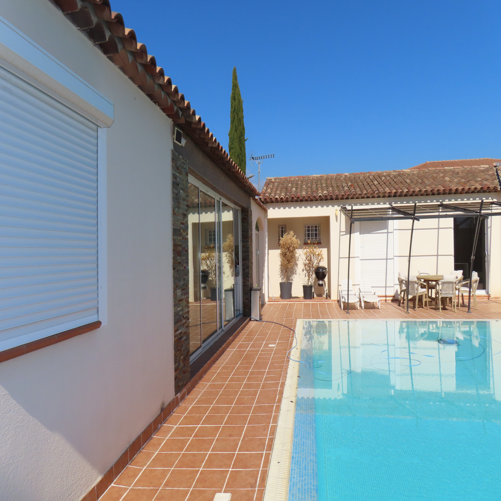 Une terrasse couverte avec sa cuisine d'ete et un studio indépendant complètent le bien. Côté prestations, elle dispose d'un sous sol de 180 m2 potentiellement de salle de cinéma, salle de jeux , d un double garage de 43 m2 isolé,d'une piscine entièrement rénovée aux dimensiosn 7 X 12 m , d'un bassin à poissons avec carpes chauffé, pouvant servir de 2 nde piscine pour la dépendance. Le plus, les équipements sont derniers cris, avec panneaux solaires, pompe à chaleur, climatisation, alarme, portail électrique.