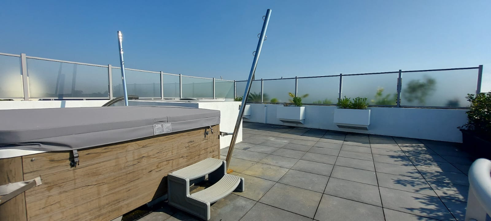 Exceptionnel... vous disposez d'un espace de détente privatif et intimiste équipé de jardinières, d'un jacuzzi et d'un coin repas de 60m2 sur le toit de la résidence.