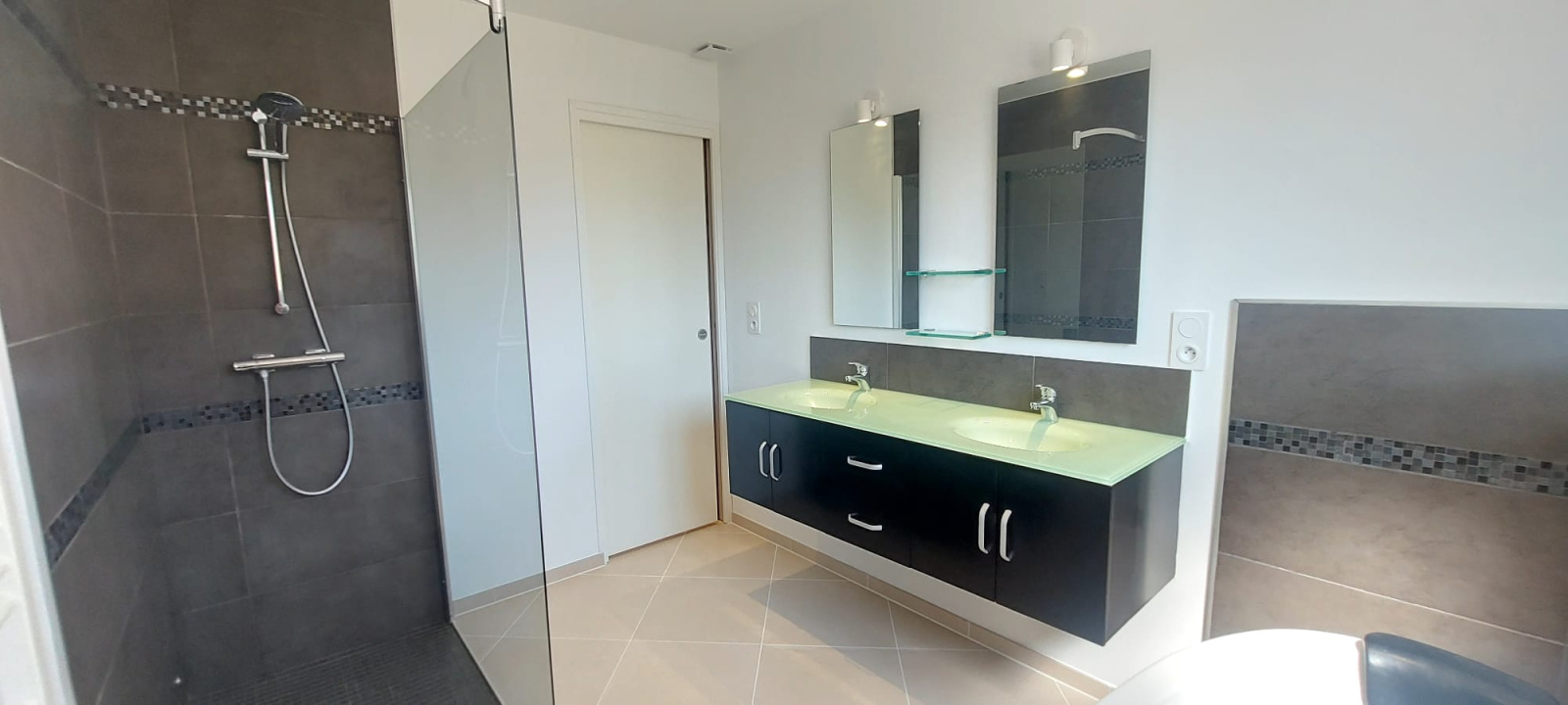 On appréciera la qualité des prestations, climatisation réversible dans chaque pièce de la villa, la domotique, les corniches eclairées, les leds au plafond, le branchement pour le vidéo projecteur du séjour, les fenêtres oscillot battantes.... A l'extérieur l'arrosage automatique, l'éclairage du jardin et de la piscine...