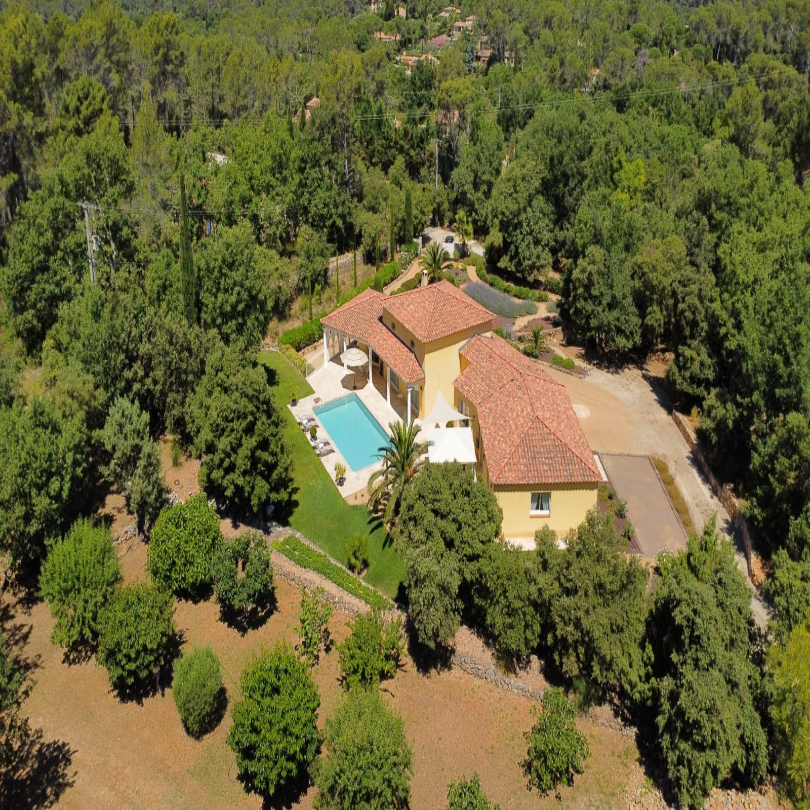 Extender Immobilier vous présente une somptueuse Néo Provençale de plain pied nichée dans un jardin remarquable et bénéficiant d'un espace boisé protégé à quelques minutes du village médiéval des Arcs sur Argens.