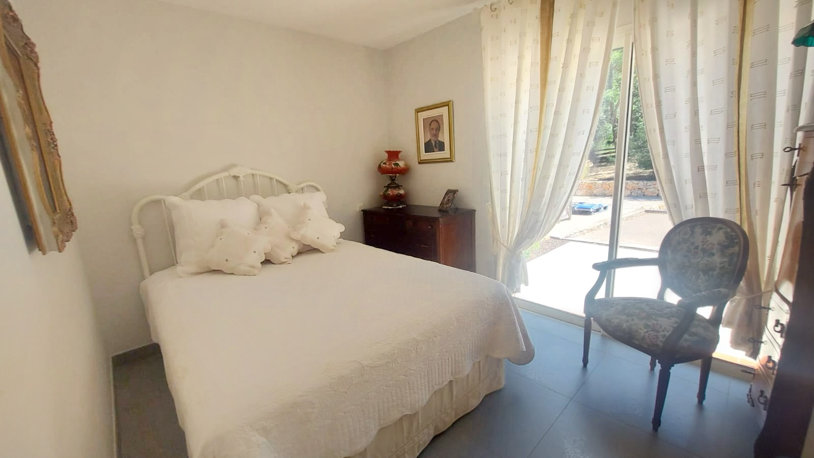 La villa parfaitement entretenue et agencée, offre une partie vie composée d'une entrée, un lumineux séjour de 60m2 avec hauteur sous plafond de 4,50m et cheminée, la cuisine provençale de 20m2 avec son îlot central, son coin dinatoire et son piano de cuisson, un rangement puis une buanderie. Côté nuit, 3 chambres entre 9 et 12m2 plus placard, puis la superbe suite parentale de 20m2 avec sa salle de bains douche wc et dressing, deux autres salles d'eau dont une partagée puis un bureau.